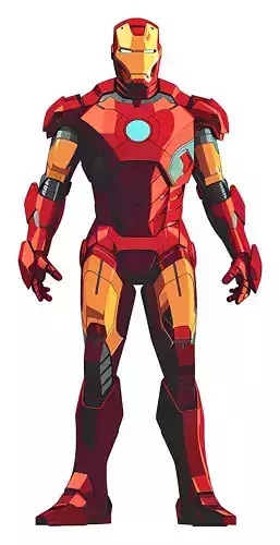Iron Man's basic 3D model showcases the superhero's iconic and advanced armor design, capturing the essence of his technological brilliance. The helmet is sleek and angular, featuring glowing eyes that emphasize the futuristic nature of the suit. At the center of the chest plate lies the glowing arc reactor, a defining feature that powers the suit and symbolizes the character's ingenuity. The streamlined shoulder and arm armor is crafted for a balance of mobility and strength, while the leg armor includes jet propulsion systems, enabling flight capabilities. The overall color scheme of red and gold, often accented with touches of silver, highlights the suit's sophistication and boldness, making it instantly recognizable. This basic model serves as a foundation for various uses, such as animations, games, or collectibles.