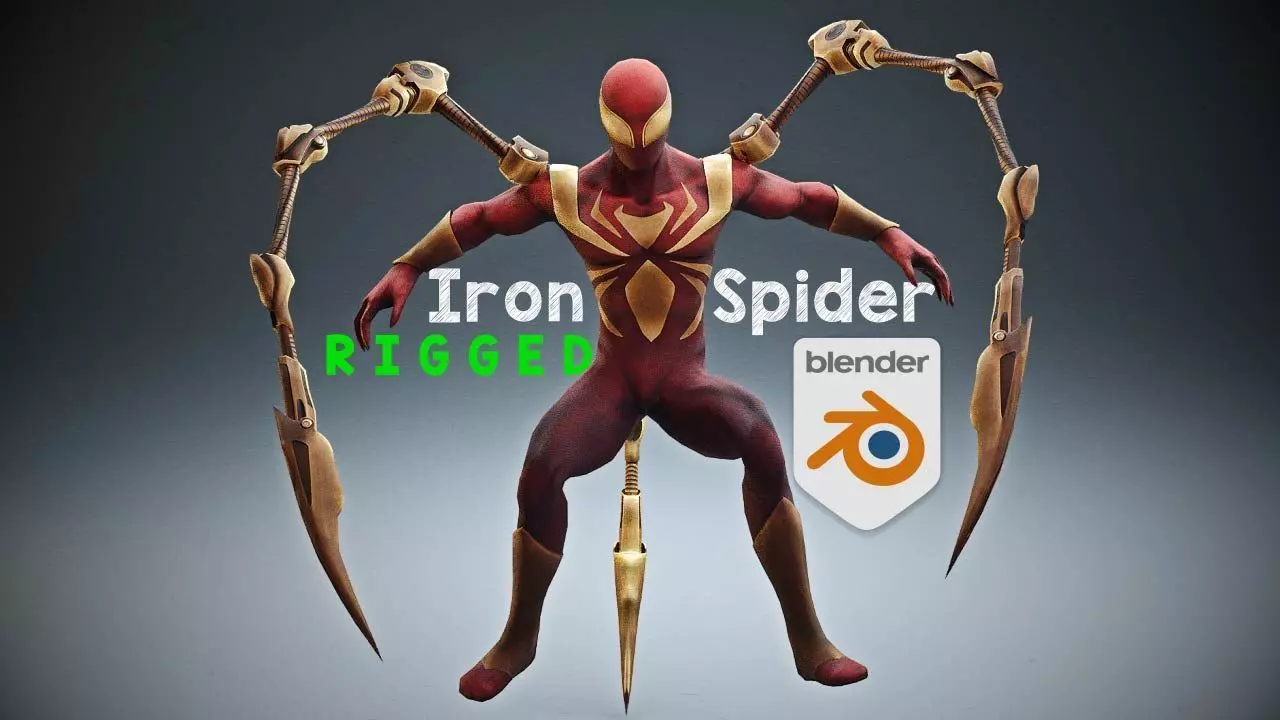 Iron SpiderMan rigged 3d model - The spider verse suit made in Blender 2.9 with all parts are textured including normals. He also has a fully featured rig to make a range of fantasy and animations.