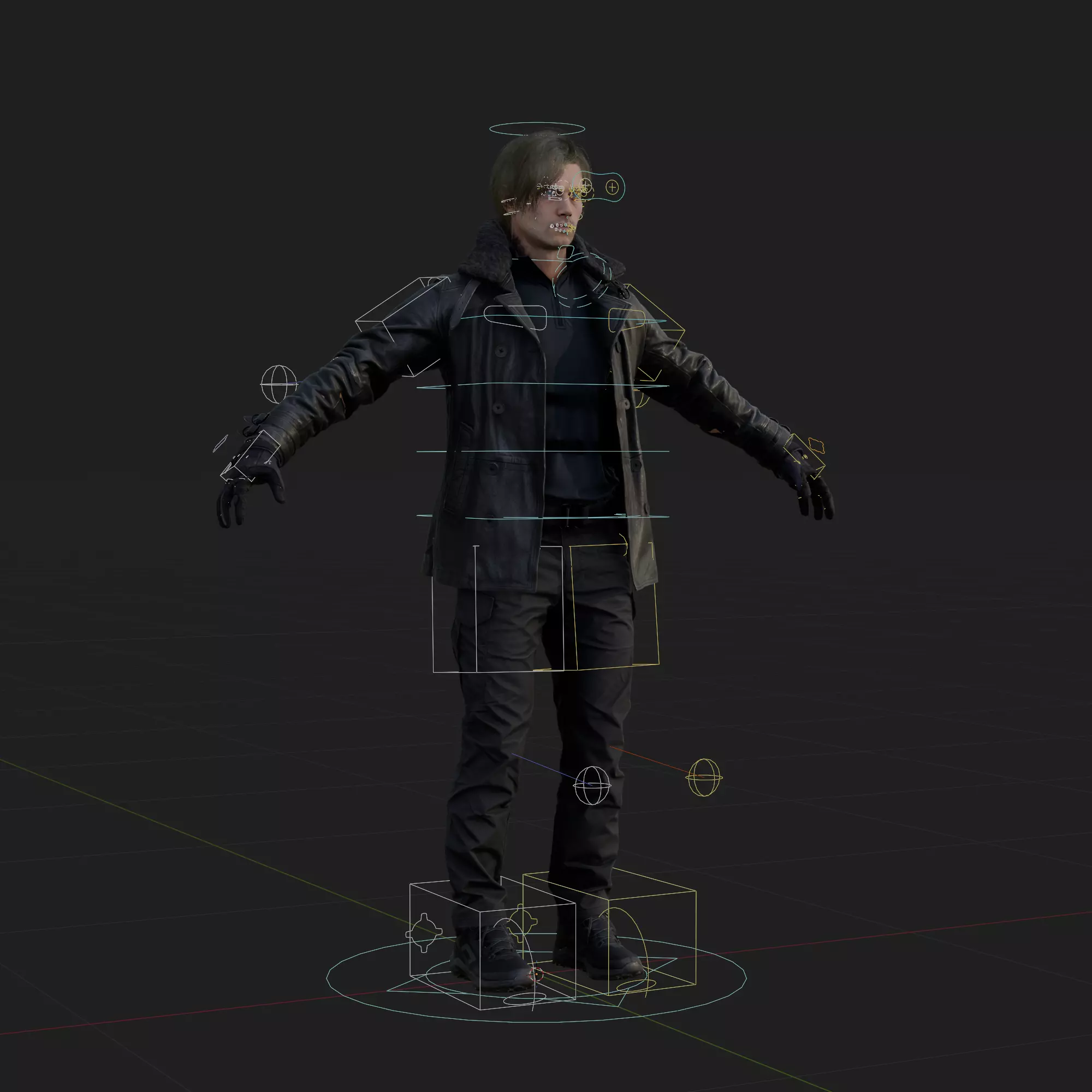 This high-quality 3D model of Leon Kennedy is based on his appearance in Resident Evil 9. The character is fully rigged and optimized for professional animation, high-end games, and cinematics. Featuring clean topology for efficient deformation and high-resolution PBR textures, the model is delivered in Blender, FBX, and OBJ formats.