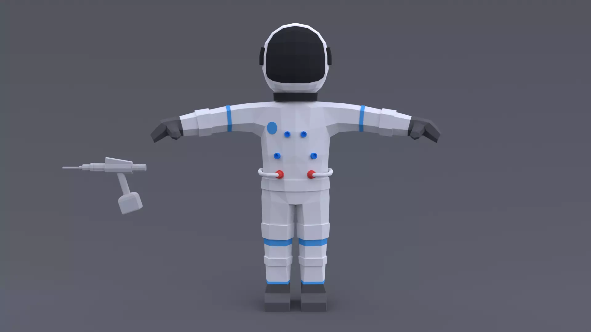 Τhis is a low poly 3D model of an Astronaut. The low poly astronaut was modeled and prepared for low-poly style renderings, background, general CG visualization presented as 2 meshes with quads/tris. The pistol grip tool is a seperate object.