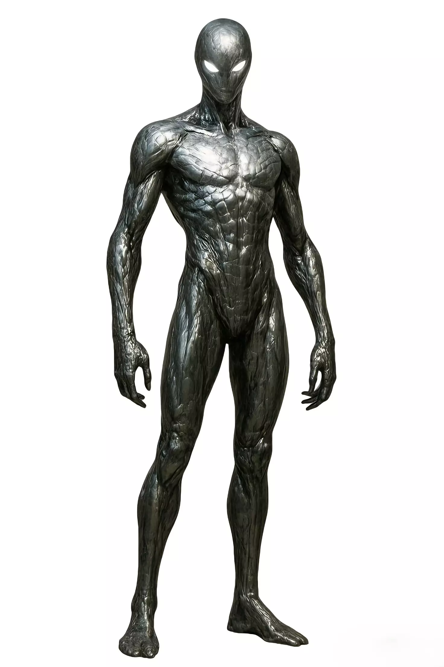 This Metallic Alien Humanoid Sculpture is a high-detail 3D character model designed for sci-fi games, cinematic animations, creature visualization, and digital asset collections. It features a sleek, muscular humanoid form with a textured metallic silver exoskeleton, glowing white eyes, and a faceless, menacing silhouette, embodying a dark, futuristic alien or symbiote aesthetic.The model’s reflective, cracked metallic textures and dynamic, muscular anatomy create a striking, otherworldly presence, making it ideal for game antagonists, sci-fi scene props, and high-end decorative sculptures. It delivers exceptional visual impact and professional rendering quality, standing out in any digital production or display environment.