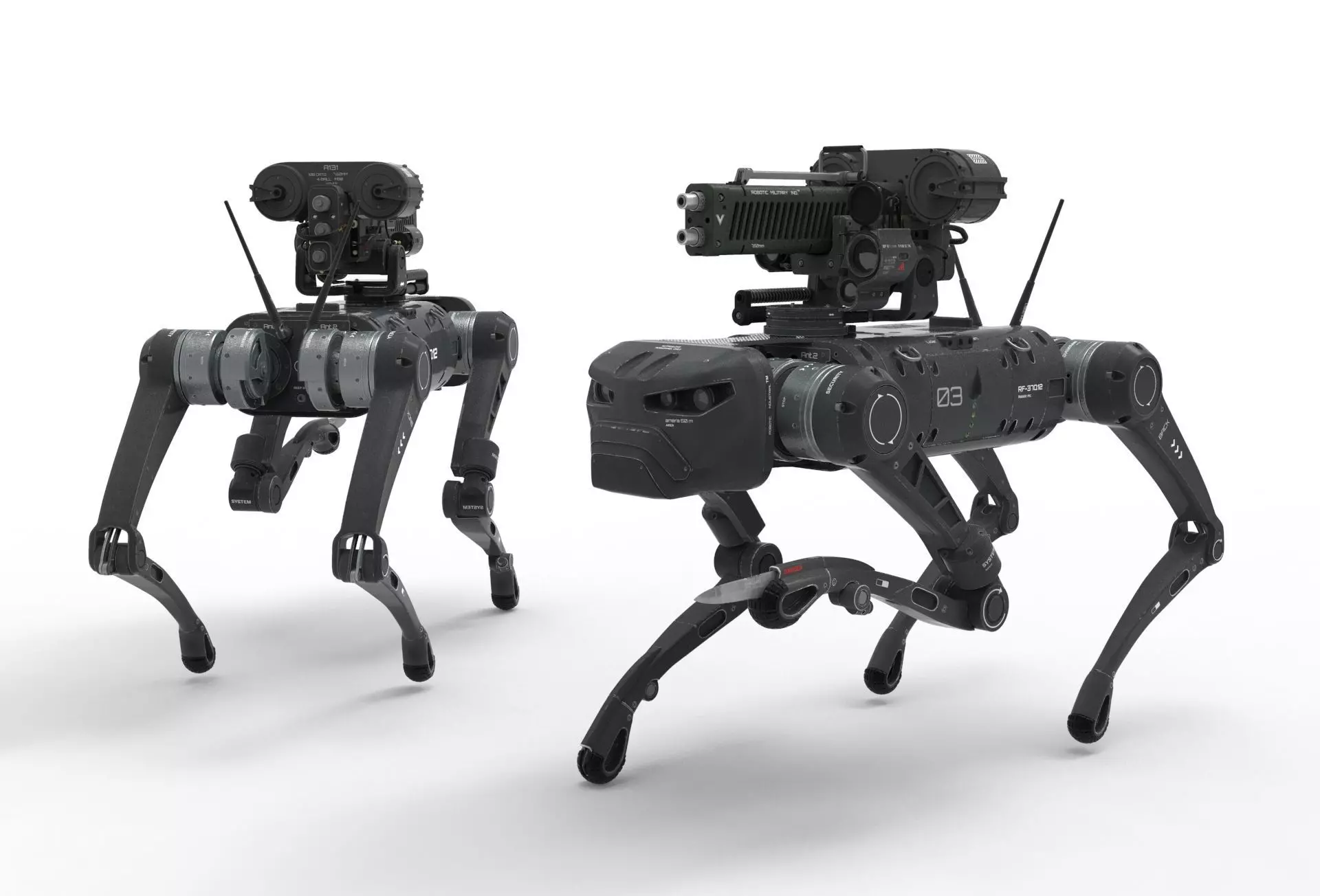Military Robot Dog with a gun - model of robot dog machine with a gun , that is designed to be used for patrol monitoring, home protection, security service etc. Is a high-quality photorealistic 3D model model , he's proper geometry UV and textured (separate textures for the body, gun, legs and arms; small details (like screws) without textures only simple materials), the model are fully detailed, enough for close-up renders, smooth enable (for all parts), model created and rendered in Maya 2024(file with texture included) and keyshot (file not included) other file formats contain geometry only.No special plugin need. Textures only for 3 main materials in a separate archive (zip). files formats:-obj (geometry only)-fbx-mb ( Maya format )-blend ( Blender format geometry only )