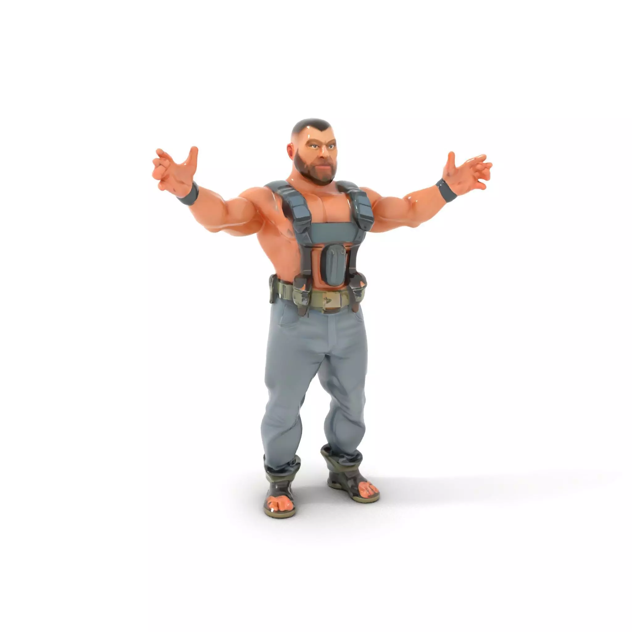 Muscular Bearded Soldier Character Rigged and Animated Low-poly 3D model