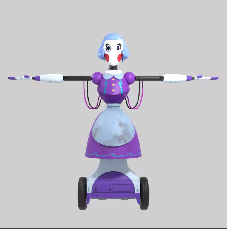 This model is the Nanny Bot character from the game Five Nights at Freddy . Along with the model you will get all the textures for it. And if your looking to animate with it your in luck because it comes rigged. It is game ready with a low poly count, but it still looks like a high quality model. You will get the model in 5 different formats: .blend, dae, mtl, obj, fbx. With these you can import the model into almost any 3d modeling software. You can see Nanny Bot multiple times along the storyline of the game.