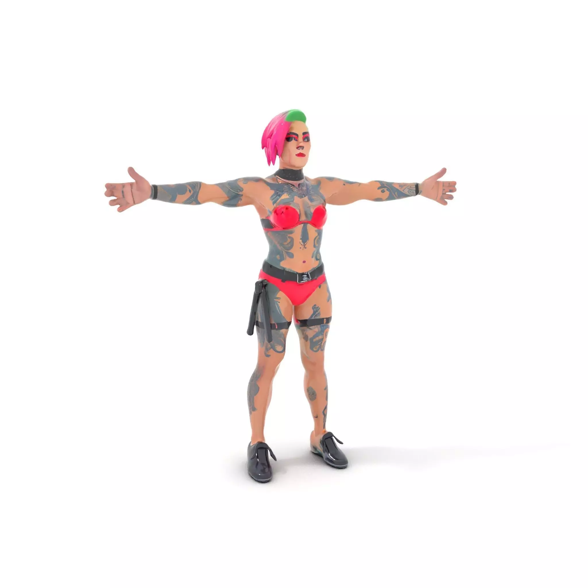 This Neon Punk Character model pack features a vibrant, edgy figure designed for modern digital environments. With bold colors and intricate tattoos, the character adds a unique aesthetic to any production. Each model has 3 levels of detail: low-poly (1000 triangles for mobile), middle-poly (10,000 triangles for environment), and high-poly (100,000 triangles), which allows for the use of this model in production rendering (such as 3ds Max, Maya, Cinema 4D, Blender, Vray/Corona/Cycles, and others), game engines (Unity and Unreal compatible), and interactive presentations, providing a choice of detail based on the LOD System principle. Ideal for gaming, animation, and virtual reality applications, the model's textures are PBR, Diffuse, NormalMap, and reflection/roughness/metallic, suitable for any modern rendering engine. All models are accurately unwrapped with no overlapping UVs. Textures are 4096x4096 in size. Please like and leave a comment if you enjoyed this model.