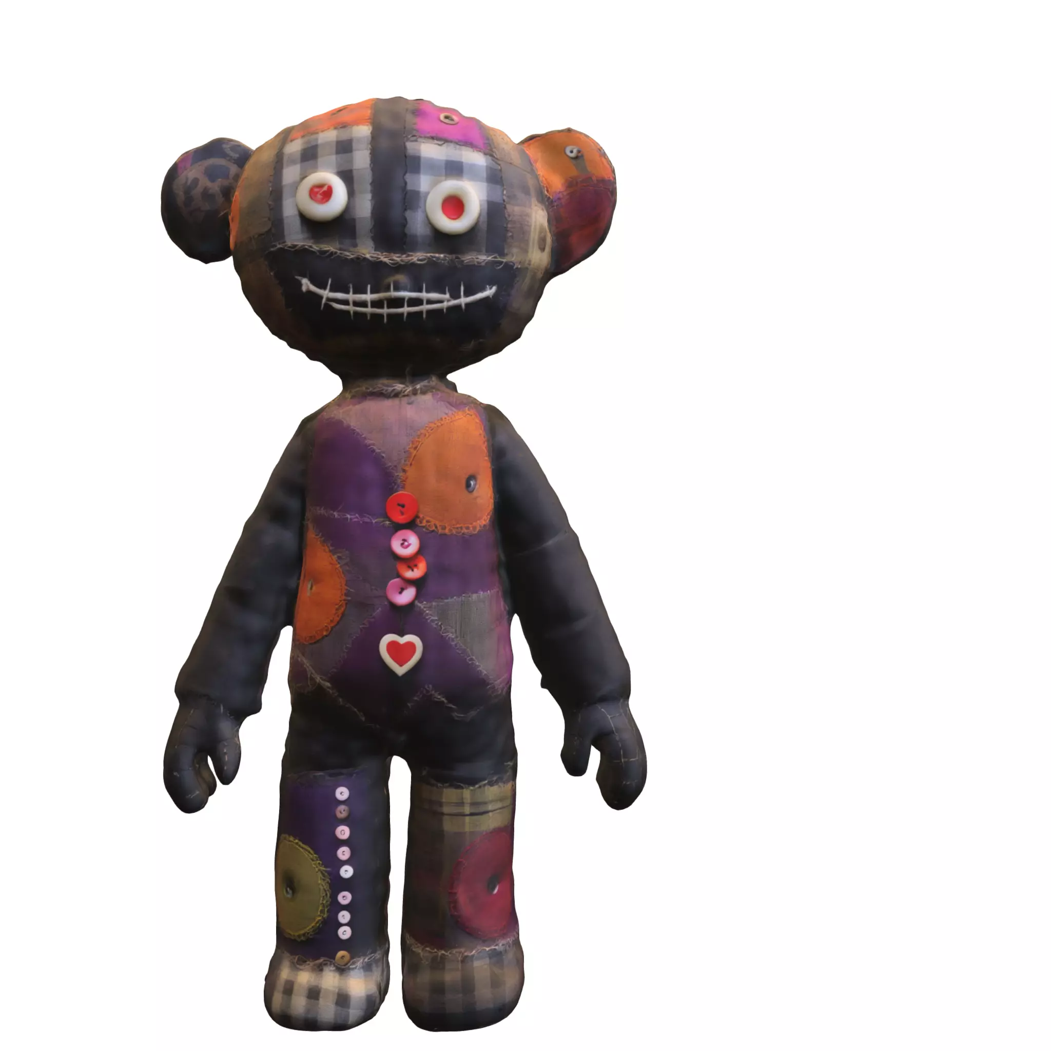 The Patchwork Bear Doll is a stylized, hand-sewn character with colorful fabric patches, button eyes, and a stitched smile. Perfect for horror-themed or stylized games like LittleBigPlanet, Don't Starve, The Sims, Dead by Daylight, and Fortnite, this quirky asset blends charm with eerie vibes.