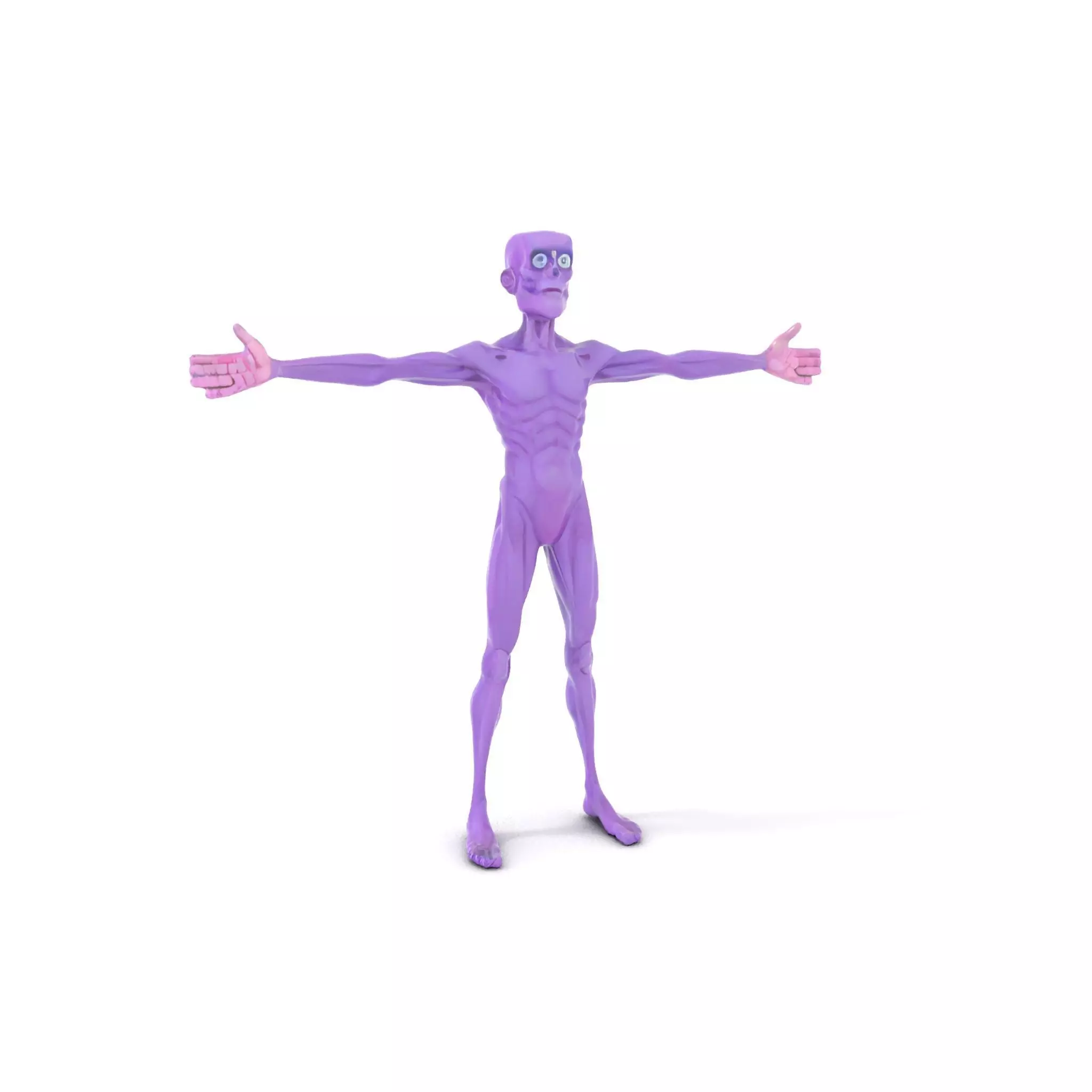 This purple alien character model features an elongated humanoid form with distinctive, exaggerated facial features and a vibrant purple texture. This model is ideal for sci-fi scenes, animated films, or video games needing a unique and intriguing alien figure. Each model has 3 levels of detail: low-poly (1000 triangles for mobile), middle-poly (10,000 triangles for environment), and high-poly (100,000 triangles), which allows for use in production rendering (such as 3ds Max, Maya, Cinema 4D, Blender, V-Ray/Corona/Cycles), game engines (Unity and Unreal compatible), and interactive presentations, providing a choice of detail based on the LOD System principle. The model's textures are PBR, Diffuse, NormalMap, and reflection/roughness/metallic, suitable for any modern rendering engine. All models are accurately unwrapped and have no overlapping UVs. All textures are 4096*4096 in size. If you like this model, please leave a comment and a like.