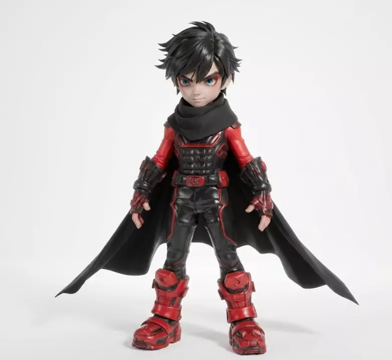 Description: Unleash a rebellious spirit with this Red & Black Rogue Agent 3D Model. This character asset features a sleek, modern design that mixes sci-fi tactical gear with a street-style edge. He wears a form-fitting matte black bodysuit accented with bold crimson panels and piping, giving him a fast, aerodynamic look. A long, dramatic black scarf wraps around his neck and trails behind him, perfect for emphasizing movement during running or combat animations. With his spiky dark hair and determined amber eyes, he fits perfectly as a protagonist in a futuristic RPG, a speed-runner in a platformer, or a rival character in an action game.