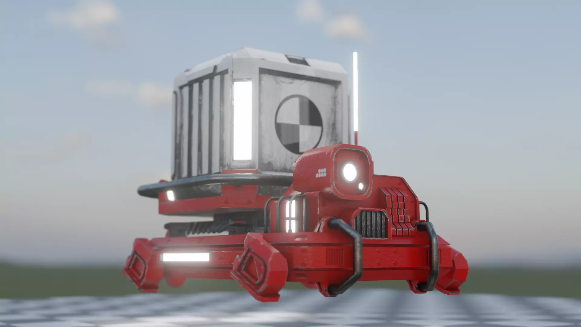 red sci-fi Cargo Delivery floor robot Drone Low-poly 3D model