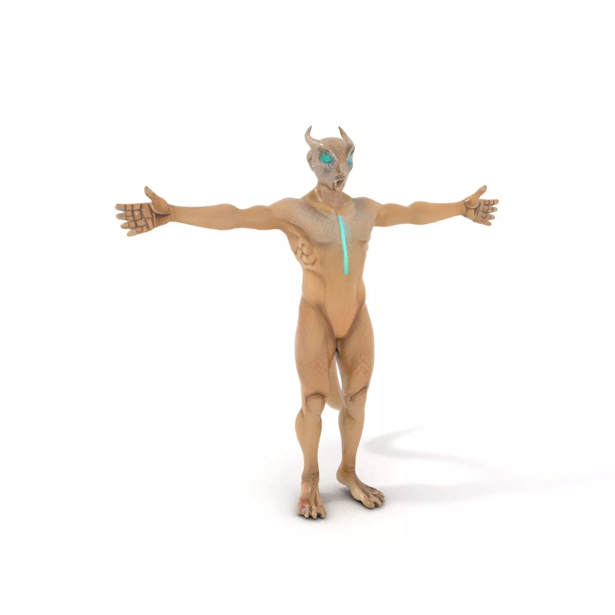This 3D model pack features a detailed reptilian humanoid alien character, perfect for science fiction scenes and games. Each model has 3 levels of detail: low-poly (1000 triangles for mobile), middle-poly (10,000 triangles for environment), and high-poly (100,000 triangles), which allows for the use of this model in production rendering (such as 3ds max, Maya, Cinema4D, Blender, Vray/Corona/Cycles and all other), game engines (Unity and Unreal compatible), and interactive presentations, providing a choice of detail based on the LOD System principle. The character can be used in science fiction films, video games, and virtual reality projects to add a unique extraterrestrial element. The model's textures are PBR, Diffuse, NormalMap, and reflection/roughness/metallic, which are suitable for any modern rendering engine. All models are accurately unwrapped and have no overlapping UV. All textures are 4096*4096 in size. The first image is the reference used for creating the 3D model. It is important to carefully evaluate the quality of the model by examining the preview images that display the topology and polygonal mesh. These previews (WIRE and WEB 3D Preview) clearly demonstrate how accurately the model matches the original reference and how well the geometry has been executed. Please like and leave a comment for the model if you liked it.