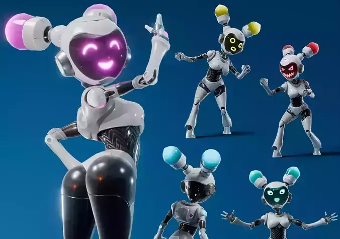 Game-ready robot girl model suitable for games and real-time applications.