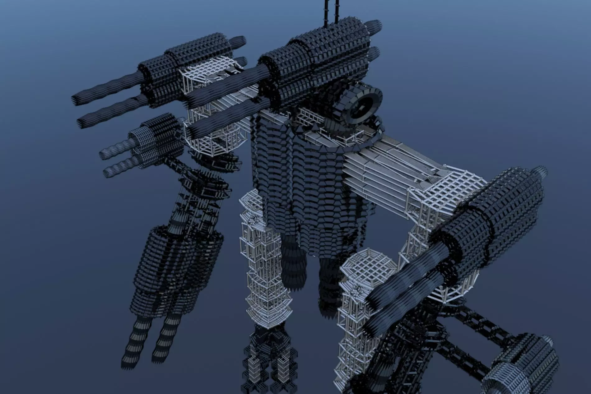 The model is consisted of all body parts being modeleled seperately and then made into one robot, so each part is adjustable,changable and can be remodeled to look differently.