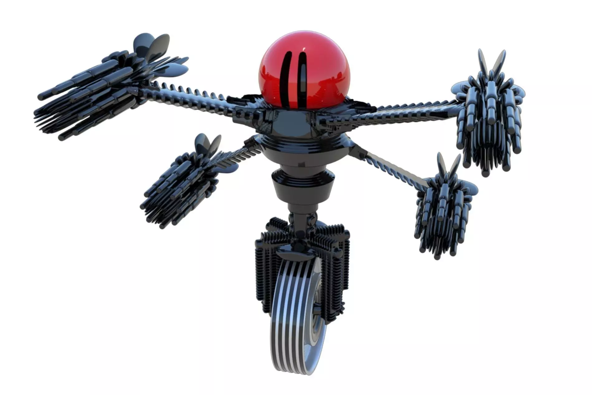 This is a robot made completely custom out of a head of an architect. Its inspiration is based on aerodinamics, lightning speed and sharp movements, so the design was inspirated by that notion.