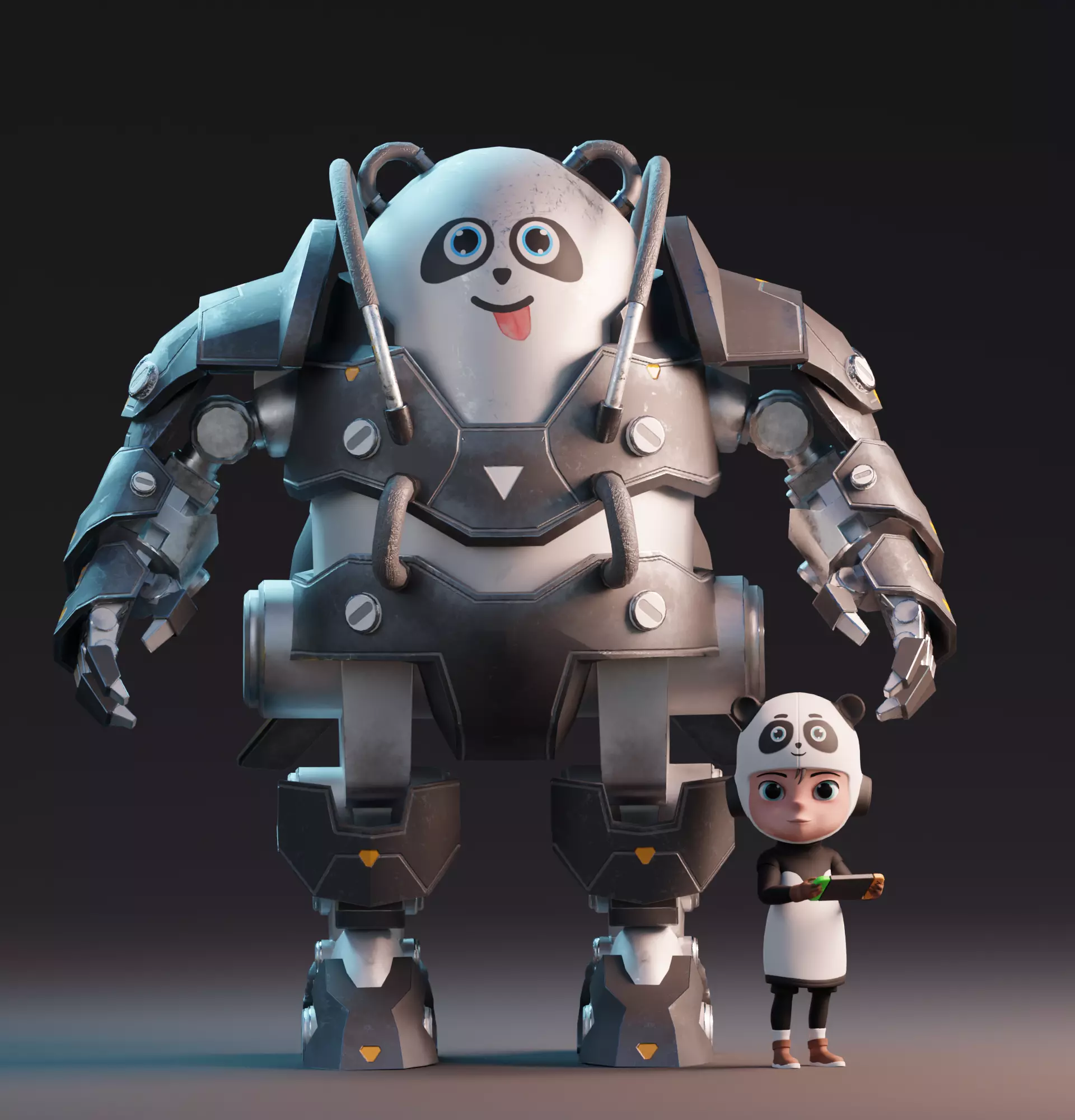 Robot Panda and Panda Kid Character 3D model