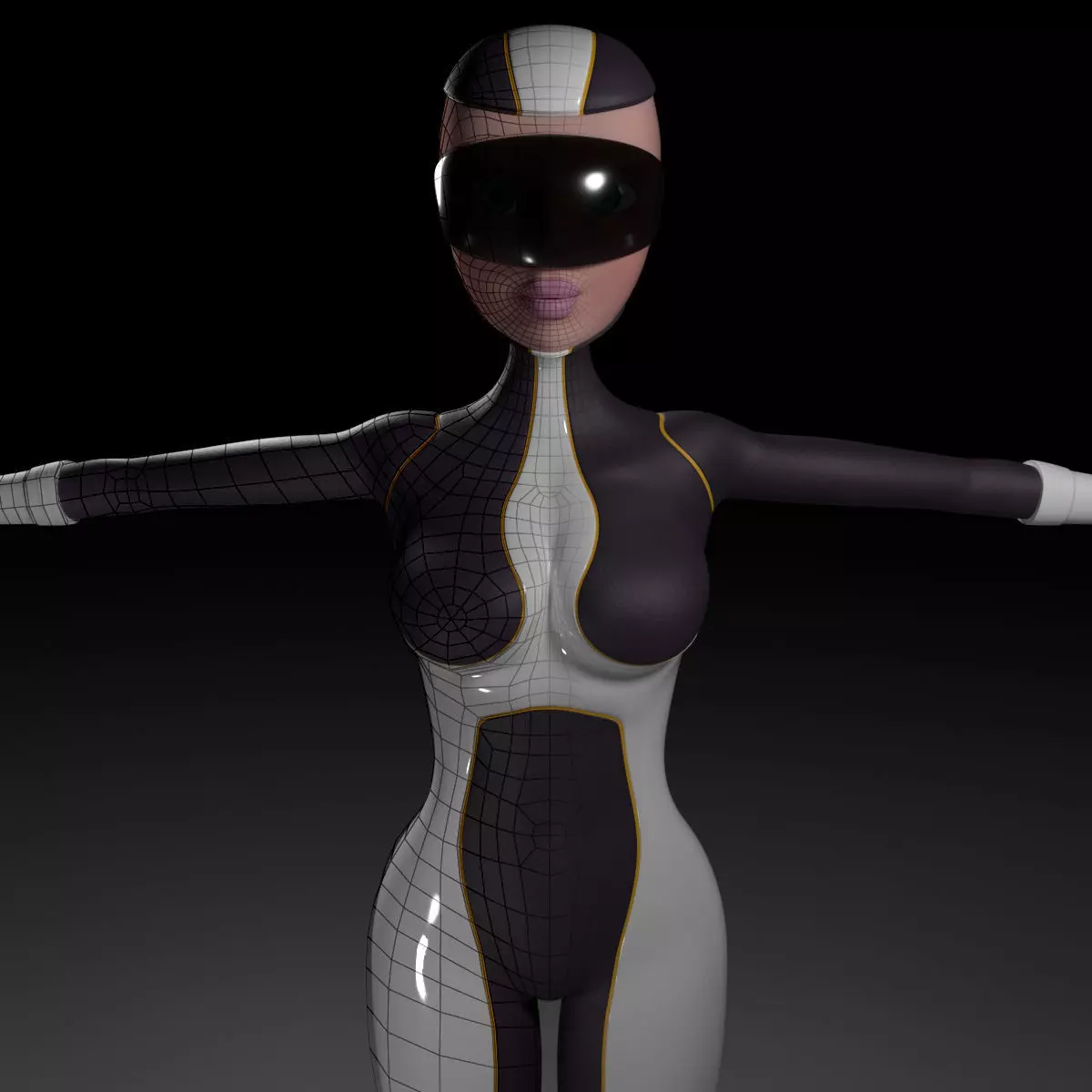 Scifi Cartoon Girl, ready for rendering. Just press the button.This character was created with optimization in mind. It's all polygon quads, and it has only one texture for the whole character (Diffuse, Specular, Normal).