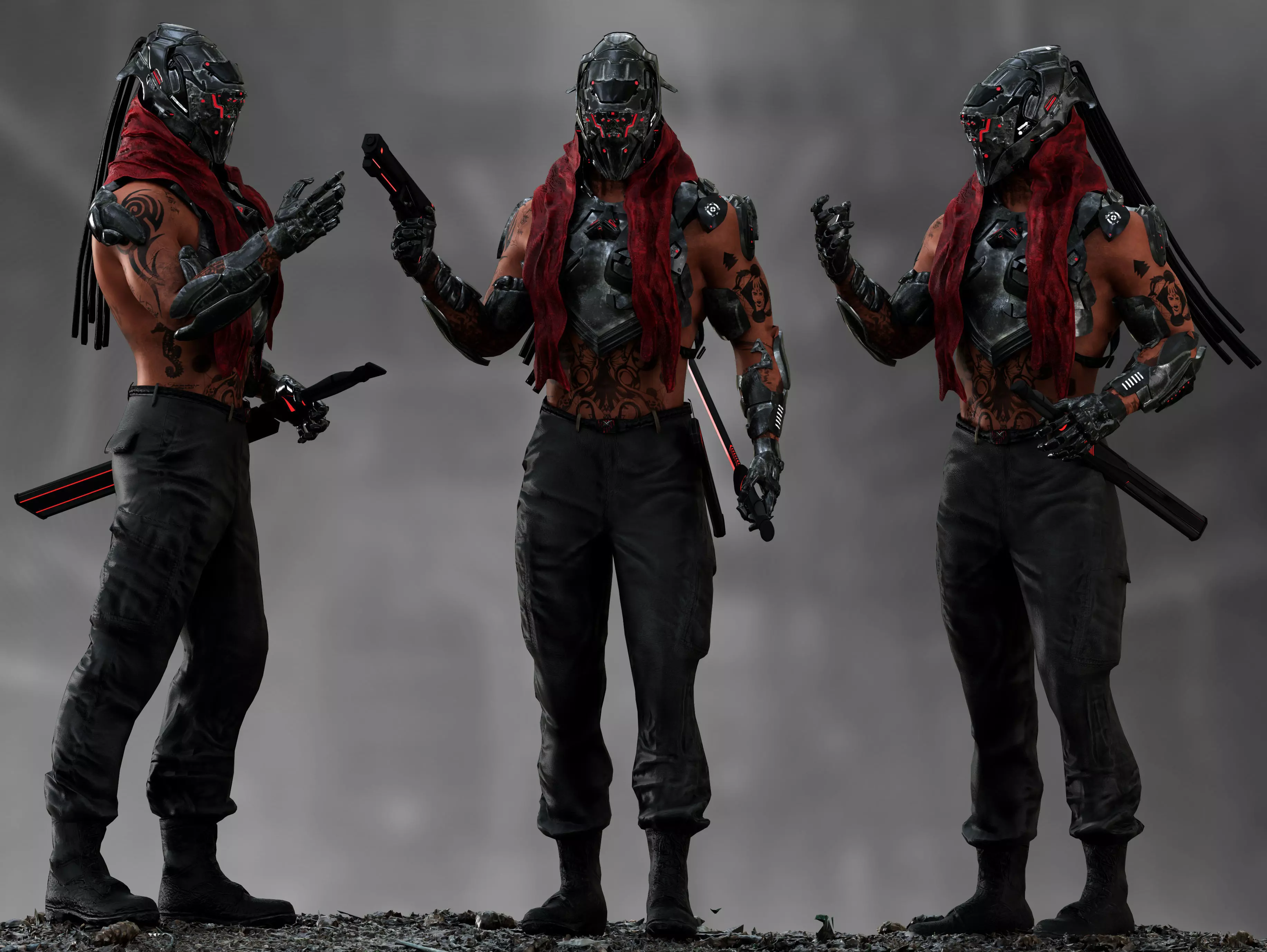 Detailed low poly 3D character Sci Fi Cyberpunk Samurai