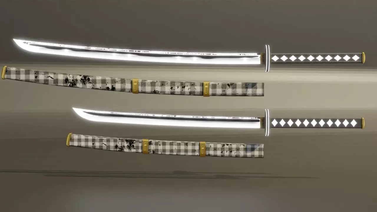 Sci-fi samurai Katana set with Wakizashi Low-poly 3D model