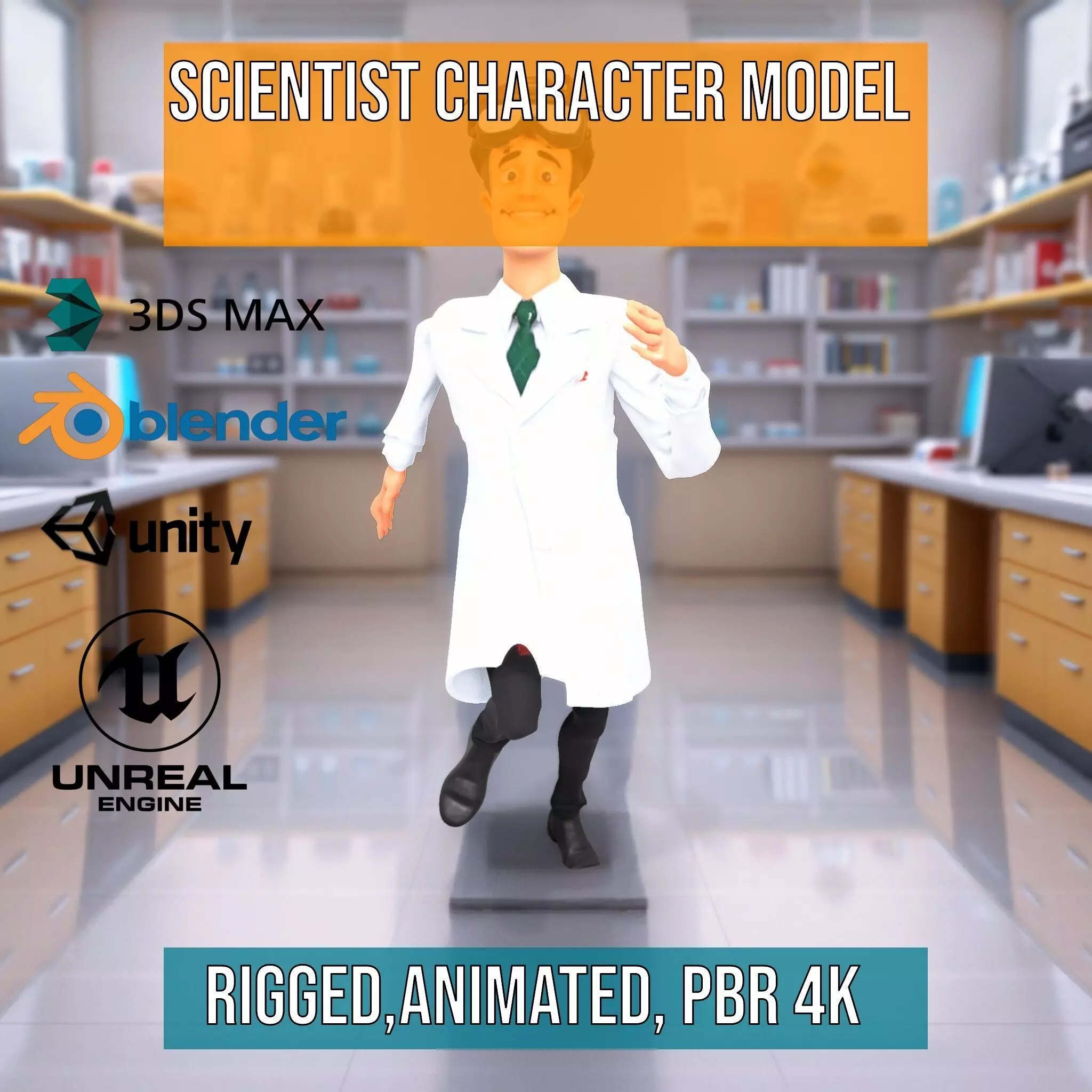 This detailed Scientist Character model pack presents a whimsical yet professional lab scientist, perfectly suited for educational animations, scientific simulations, and virtual reality experiences. The character's features, such as the lab coat, tie, and googles, are crafted with attention to detail to enhance realism.