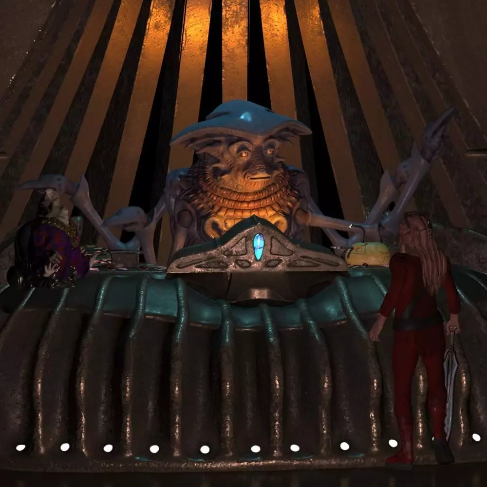 Starscape Helmsmen are a unique and highly specialized species known for their symbiotic relationships with massive biomechanical starships. These beings are deeply integrated with their vessels, often serving as the central nervous system, controlling navigation and various ship functions with unparalleled precision and efficiency. Starscape Helmsmen are revered for their innate ability to interface with complex technology, allowing them to guide their starships through the most treacherous regions of space with ease. Despite their formidable capabilities, they are gentle and deeply empathetic, forming strong bonds with their crew and ship. Their presence on a vessel is a mark of advanced engineering and deep symbiotic connection, making them indispensable to the operation of the most sophisticated starships in the galaxy.