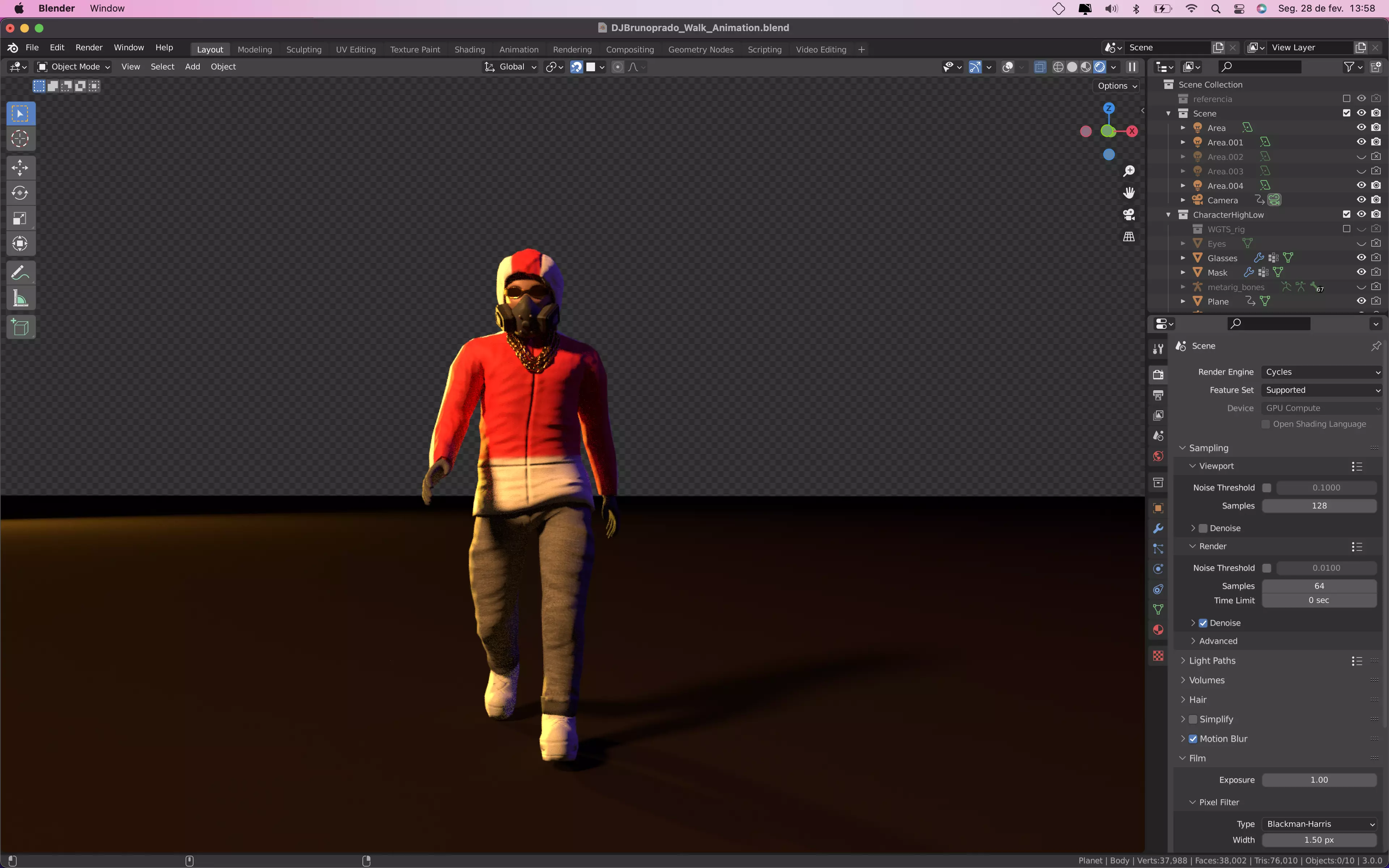 The model includes animations (movement or actions) that can be played in supported software or engines.