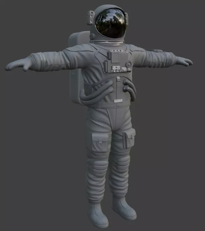 Highly detailed 3D model of a modern gray extravehicular activity (EVA) spacesuit worn by astronauts during spacewalks. Features realistic fabric folds, life support backpack (PLSS), helmet with reflective visor, gloves, hoses, connectors, pockets and authentic NASA-style details. Perfect for space station scenes, moon missions, Mars renders, sci-fi projects, VR and high-end visualizations. Clean topology, non-overlapping UVs, PBR materials ready for any render engine.