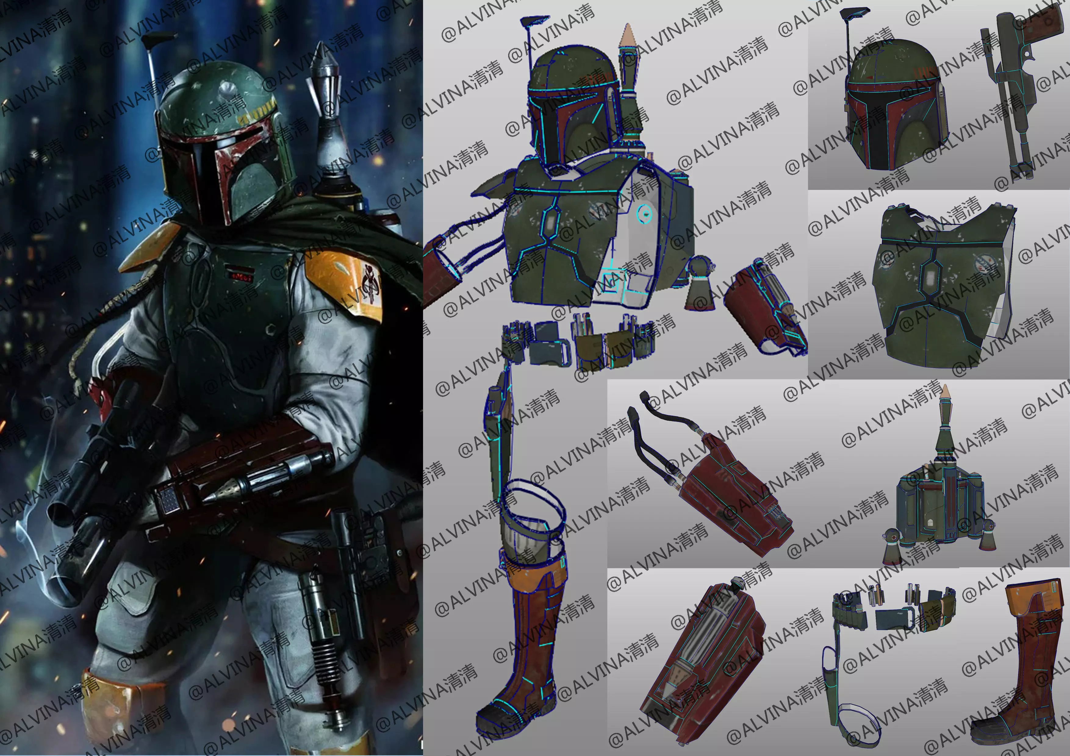 Star Wars Boba Fett Armor - DIY Cosplay Pepakura Foam Template, PDO file not encrypted! After decompression, you can freely adjust the size and modify the texture!