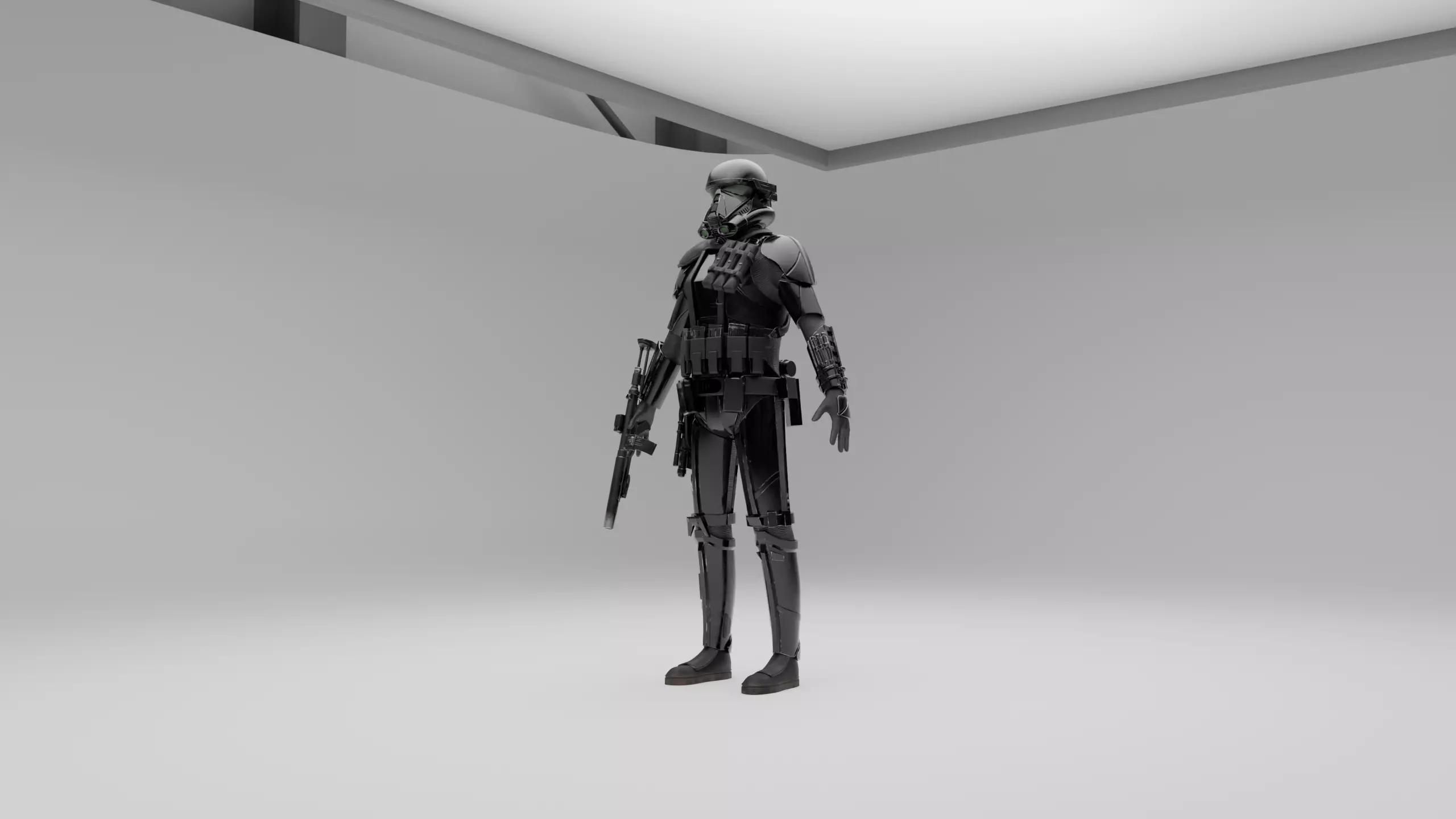 This is a model of the Star Wars Death Trooper, as seen in the Movie Star Wars Rouge One. The model is fully PBR textured with 2k textures. The model is rigged too. This is only available in the the .blend file format.