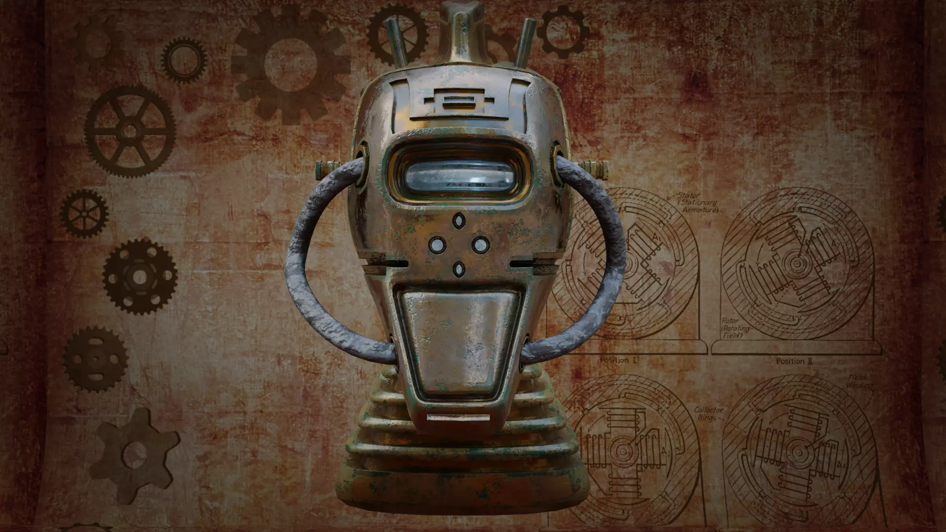 Steampunk Robot Head was modeled in Blender and textured in Substance Painter. This model comes with 5 different skins (including ones with lights), from a gold & bronze rust to a red & black metal!