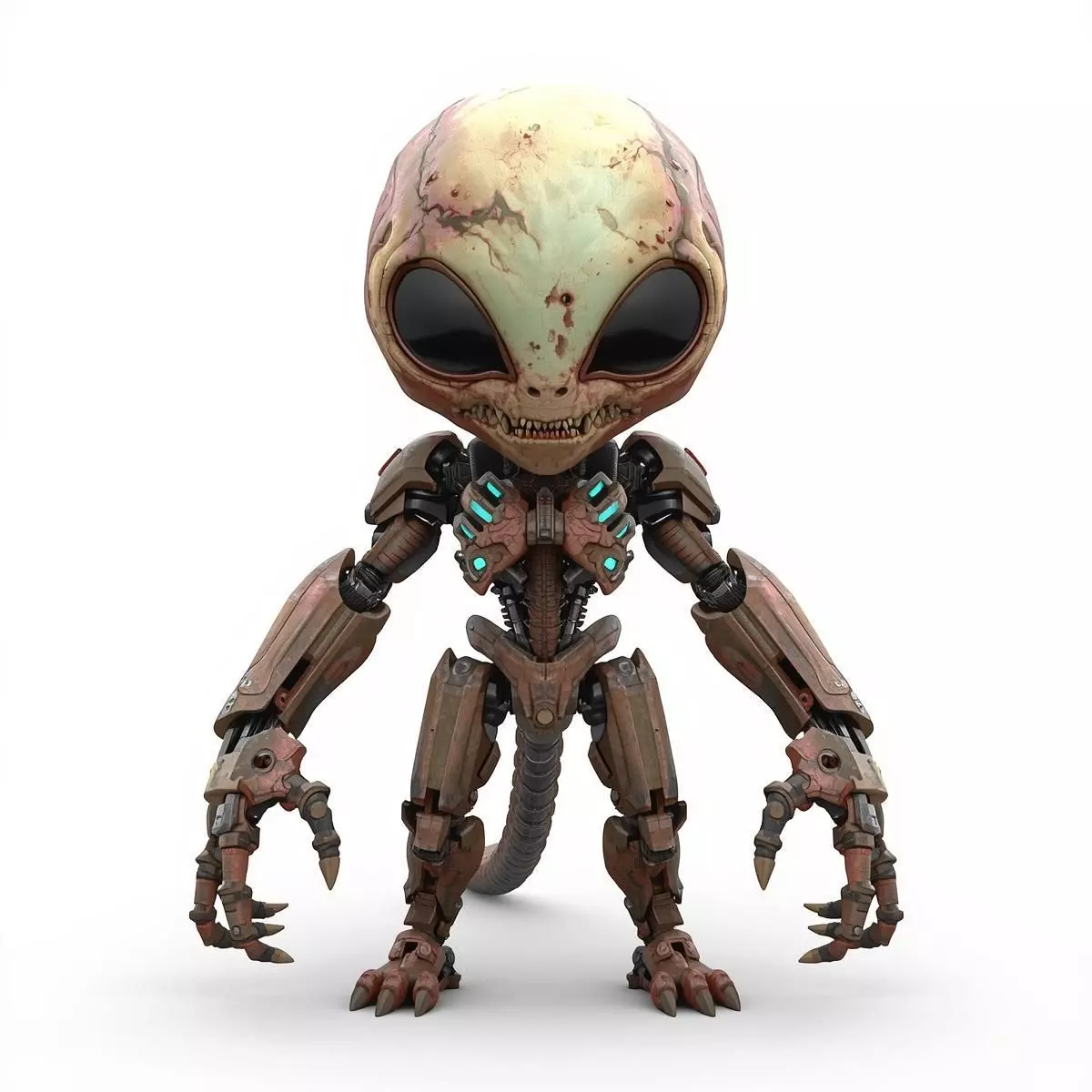Tags3d model, alien character, bio-tech robot, stylized 3d, game ready asset, sci-fi horror, mechanical skeleton, rusted metal, bone texture, 3d mascot, predator alien, armored bot, tactical robot, high-tech character, character design, digital sculpture, futuristic companion, hard surface, hydraulic joints, cybernetic organism