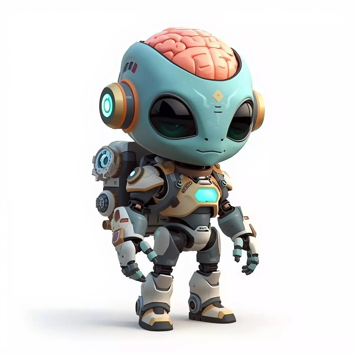 Tags3d model, chibi robot, cyber brain, stylized 3d, game ready asset, futuristic character, teal and cream, bio-mechanical, tactical bot, 3d mascot, cute bot, sci-fi companion, armored plating, life support backpack, high-tech toy, character design, social simulation, digital sculpture, brain bot, advanced engineering