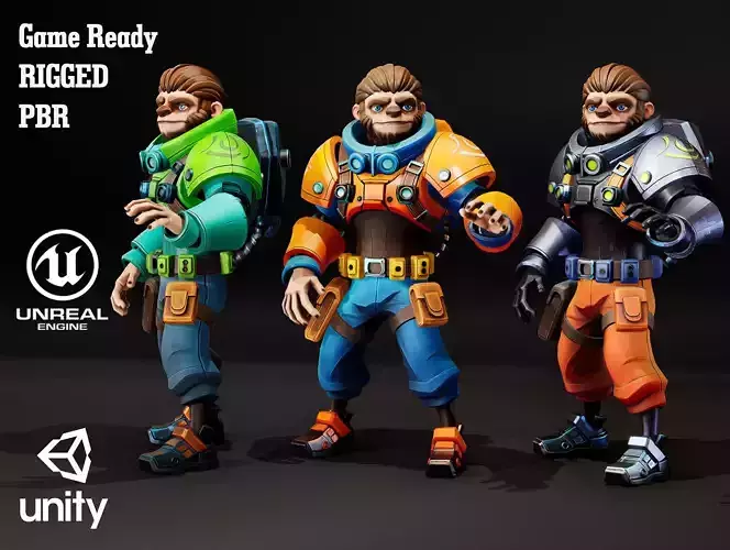 3 skins included in this pack. 2 Texture sets for each skin. For CharacterPBR Textures Metal/Roughness 4K Textures - normal, metallic, roughness, albedo, occlusion.2 Texture sets - M_Sloth_Body, M_Sloth_Head - Character