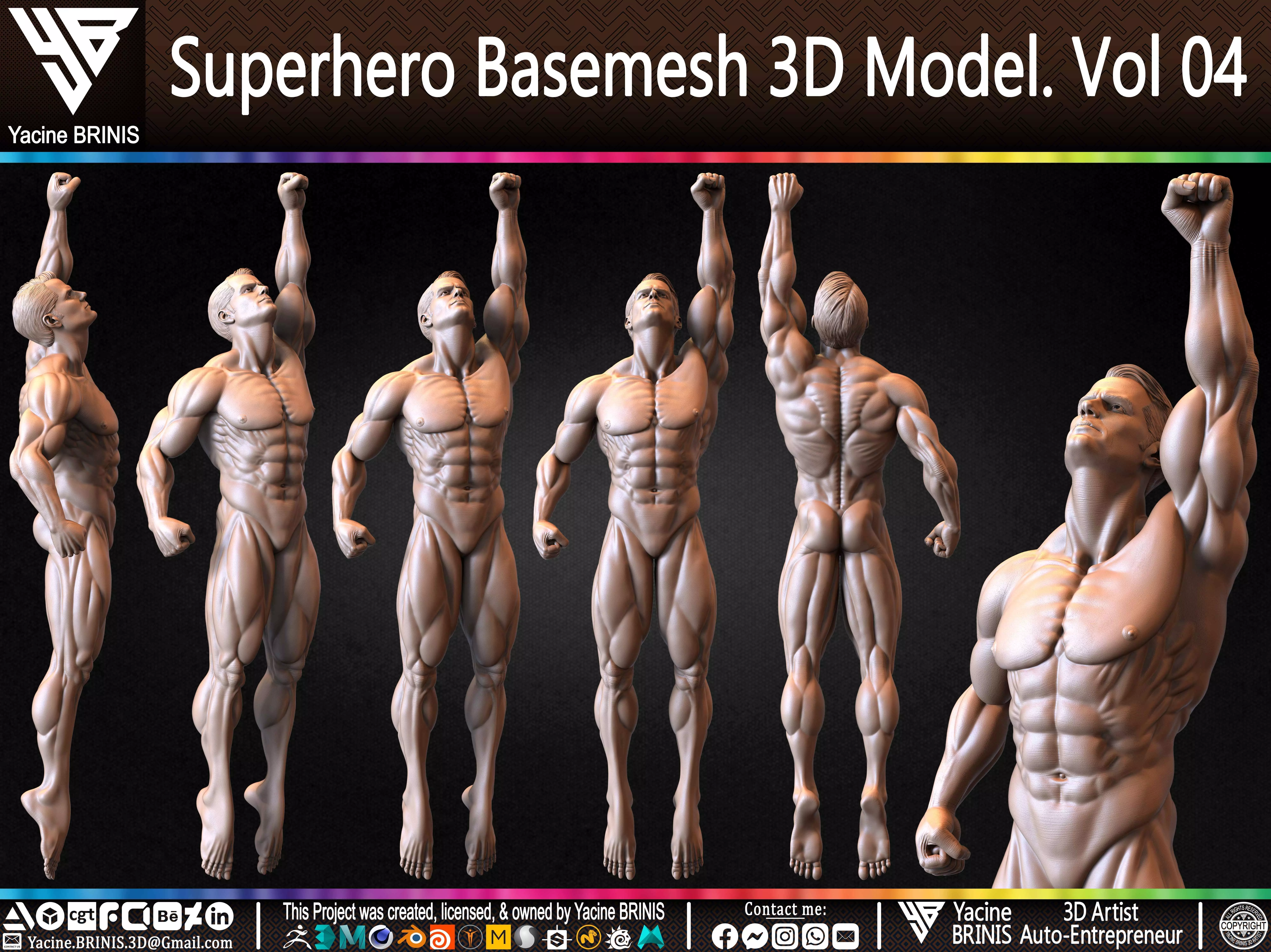 This is a Basemesh 3D Model of a superhero, sculpted with the iconic heroic pose reminiscent of Superman, and featuring the lifelike face of Henry Cavill from the Man of Steel and Batman v Superman movies. Sculpted with attention to detail using ZBrush, this model boasts highly detailed skin textures and realistic muscle anatomy, capturing the essence of strength and power.