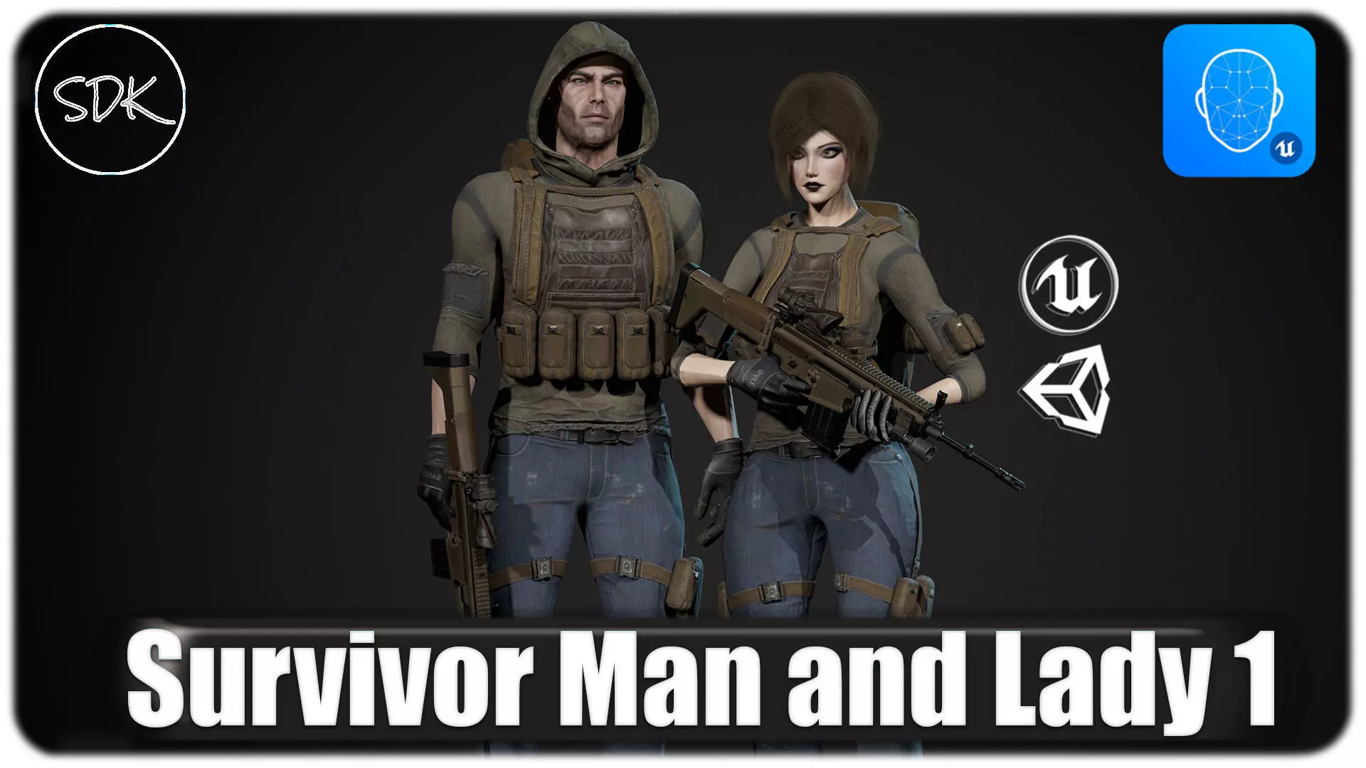 Technical details LOD 0:Survivor Man Faces 40426 Tris 79585 Verts 41611Survivor Lady Faces 50228 Tris 99057 Verts 57601
