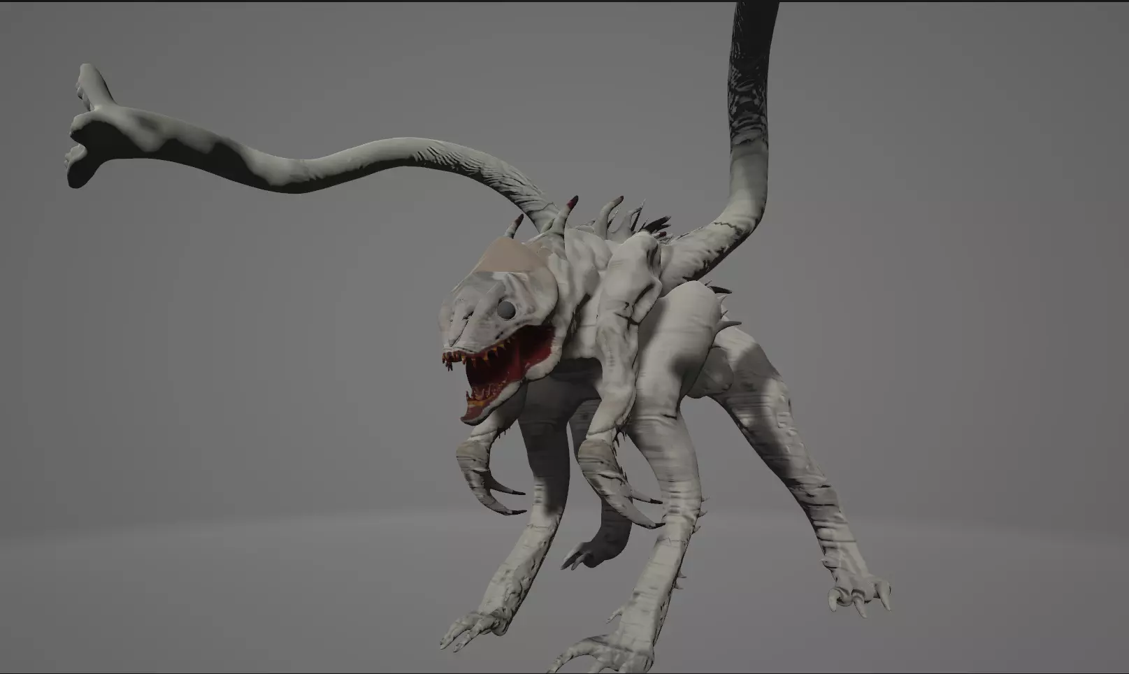 Crafted in Blender, my White Spike model embodies the fearsome alien from 'Tomorrow War.' Standing tall at 15ft, its luminescent exoskeleton, sharp features, and menacing eyes capture the movie's awe-inspiring essence.
