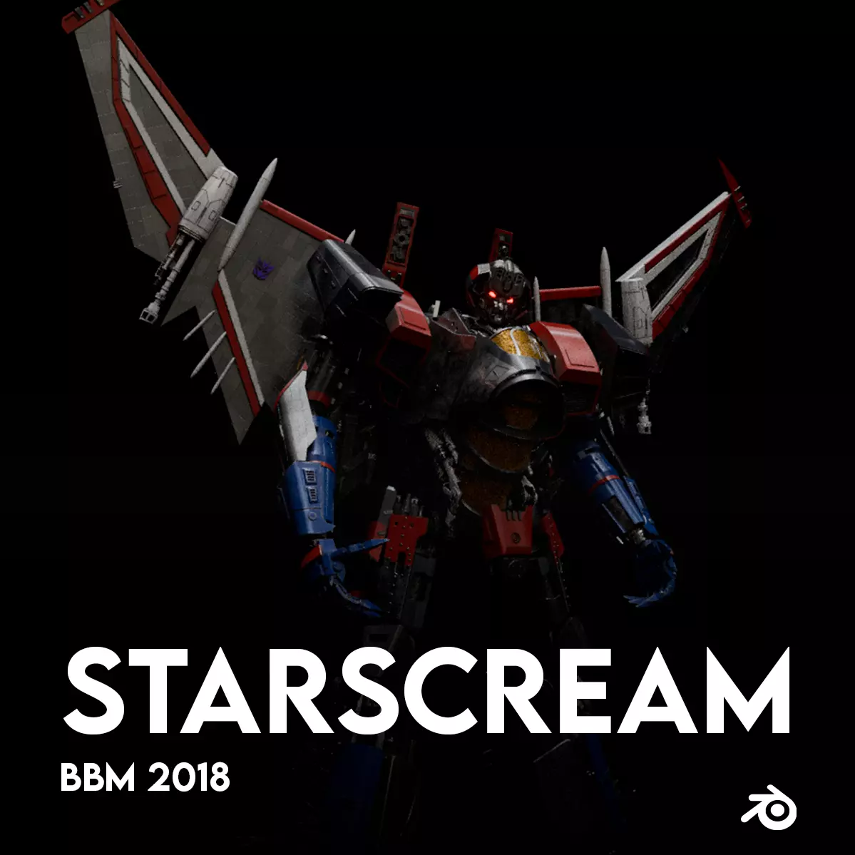 We designed this artistic representation based on the model seen at the beginning of the Bumblebee movie for Starscream, and it was modeled entirely in Blender.
