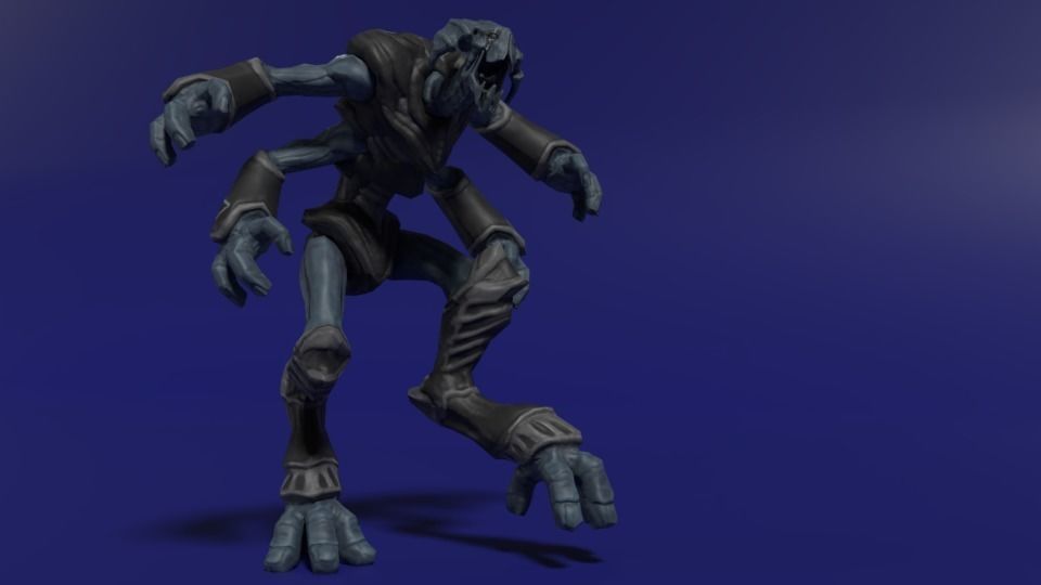 This is a model of an alien with four arms made in ZBrush with a cartoon style.