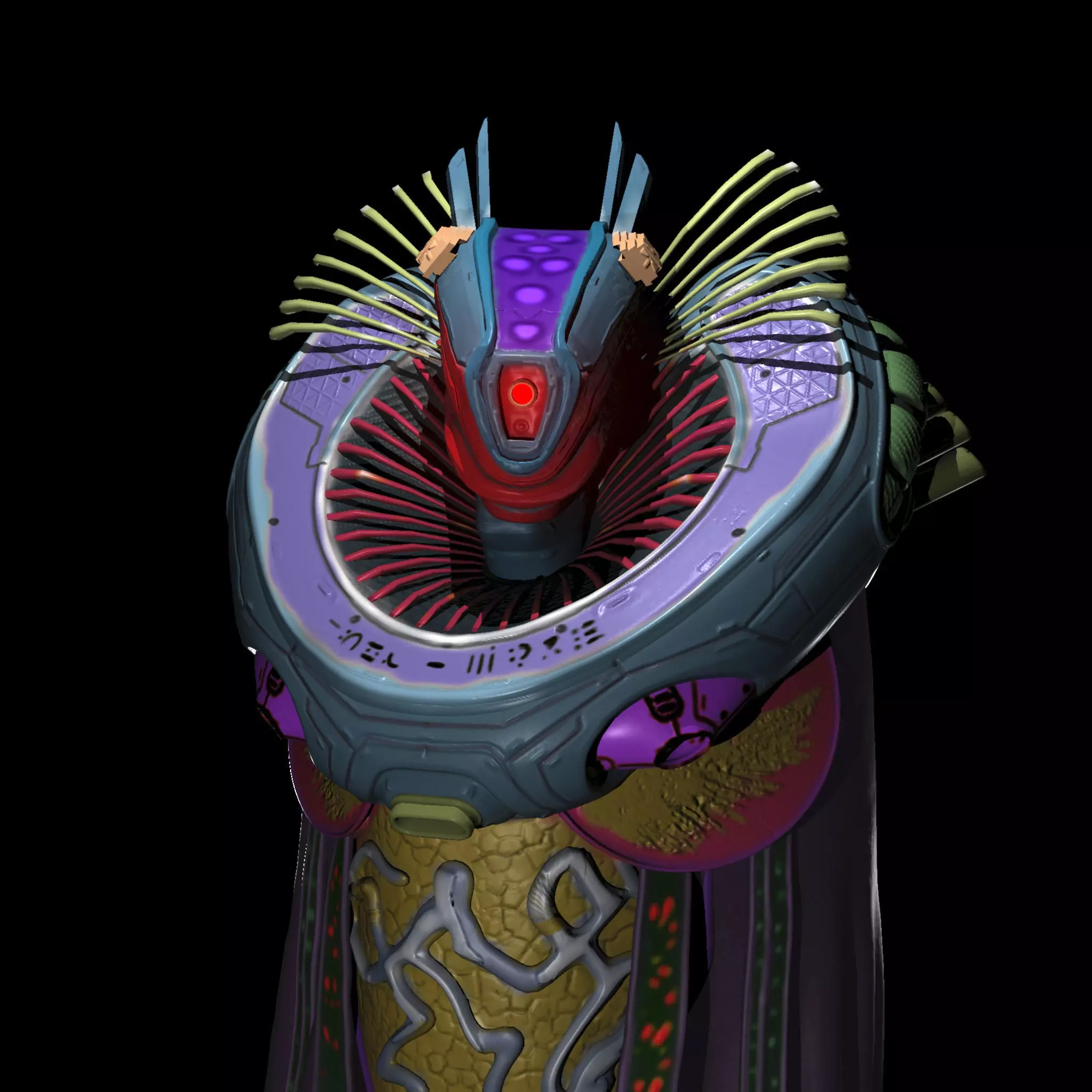 Vorlon alien commander character for ma,fbx and obj. This character has a simple rig to pose the head and move. The ma version has rig controls to move and twist the robe. __________________________________________________________________
