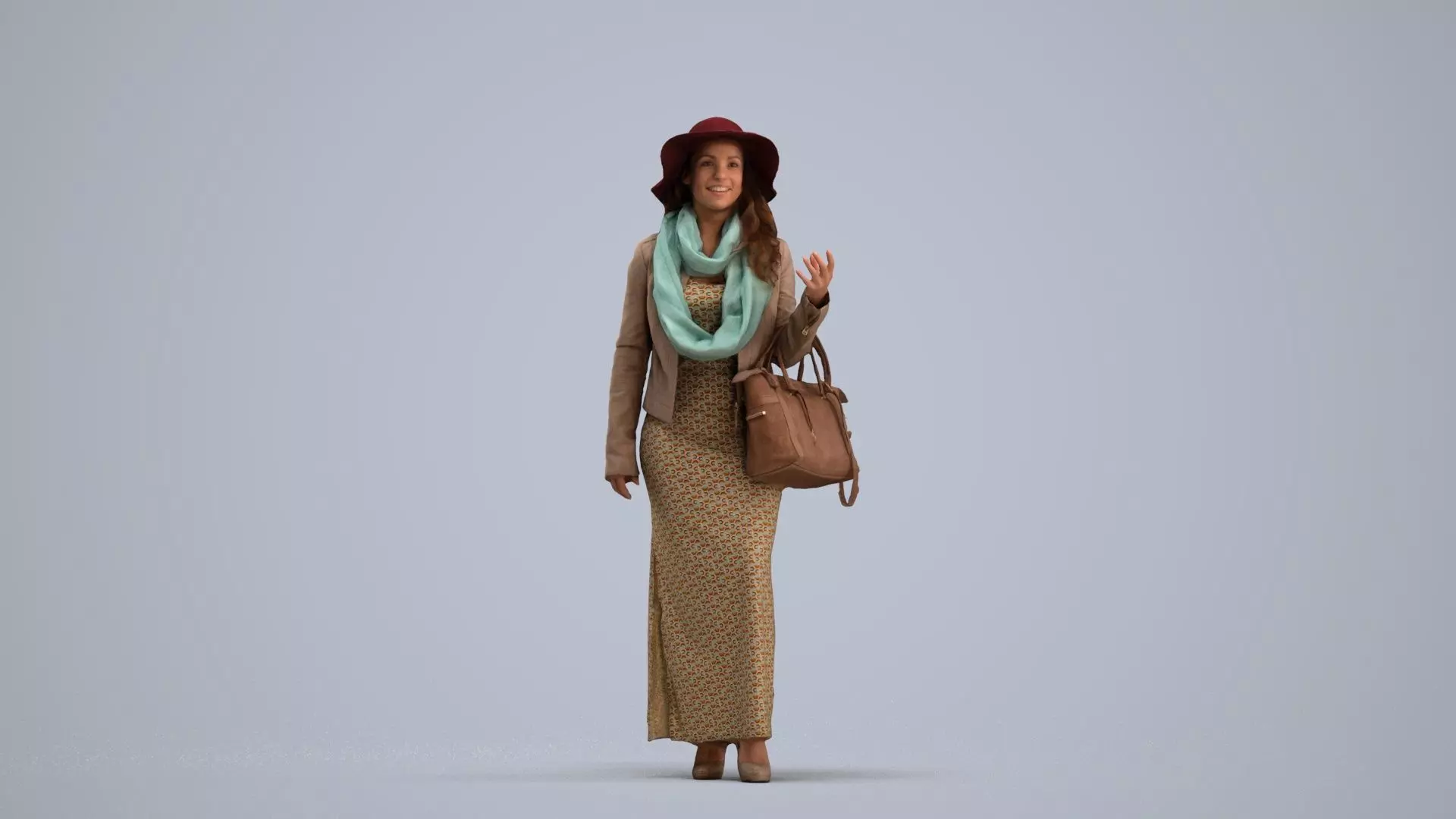 a woman in a dresshat is holding a hbag