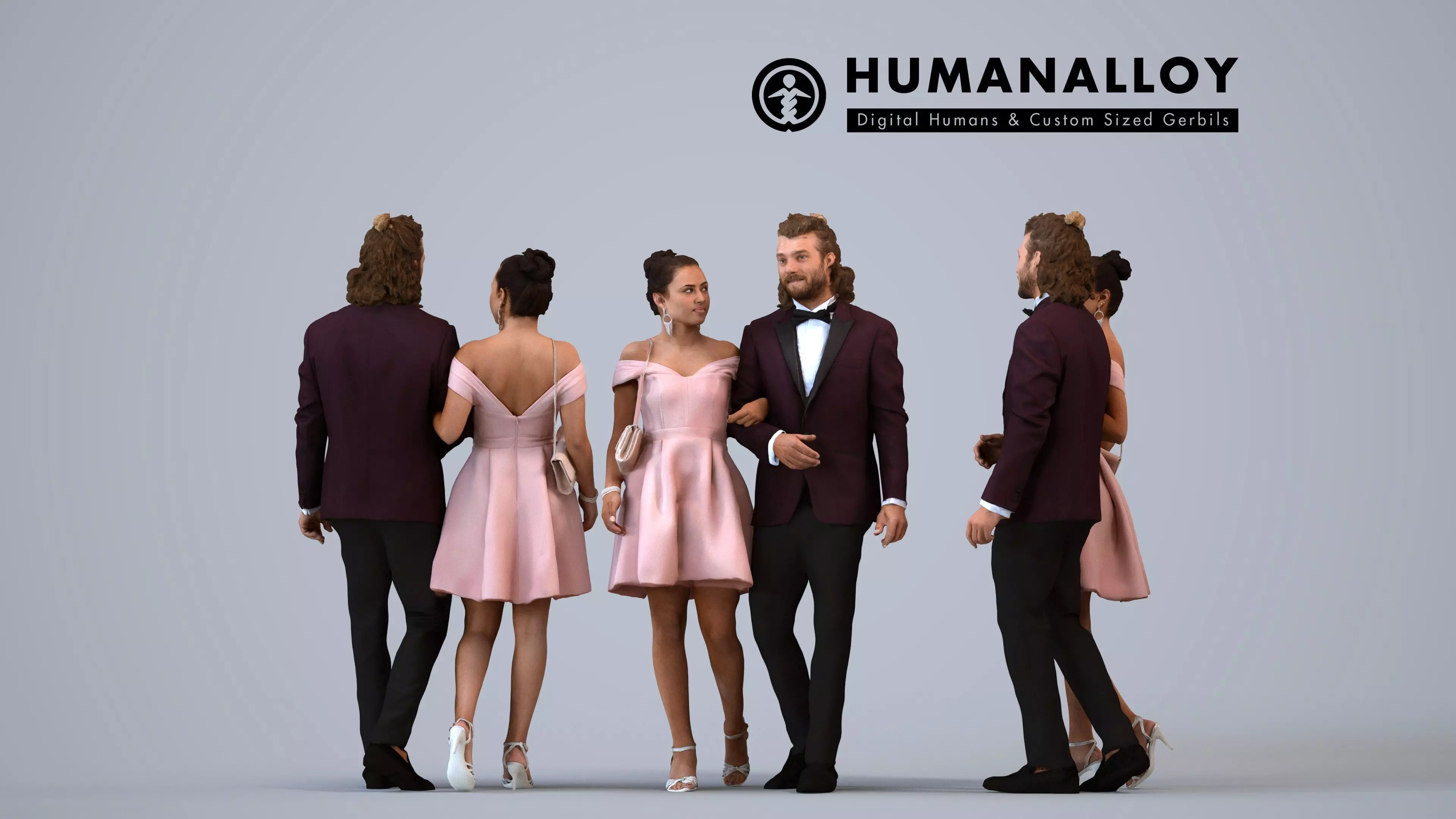 (~40k triangles, ~20k vertices per person) + 2k jpg color texture.