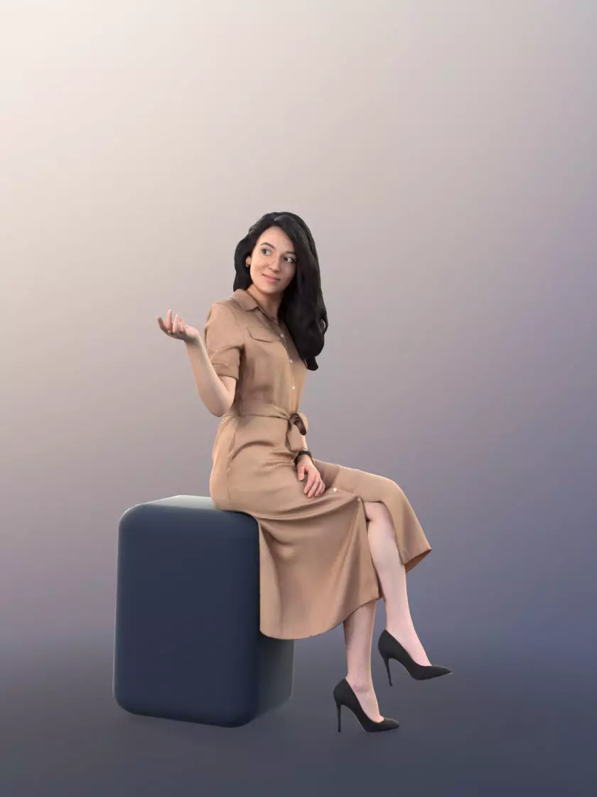 Amelie 11246 - Young Woman Black Hair Trentchcoat Sitting 3D model