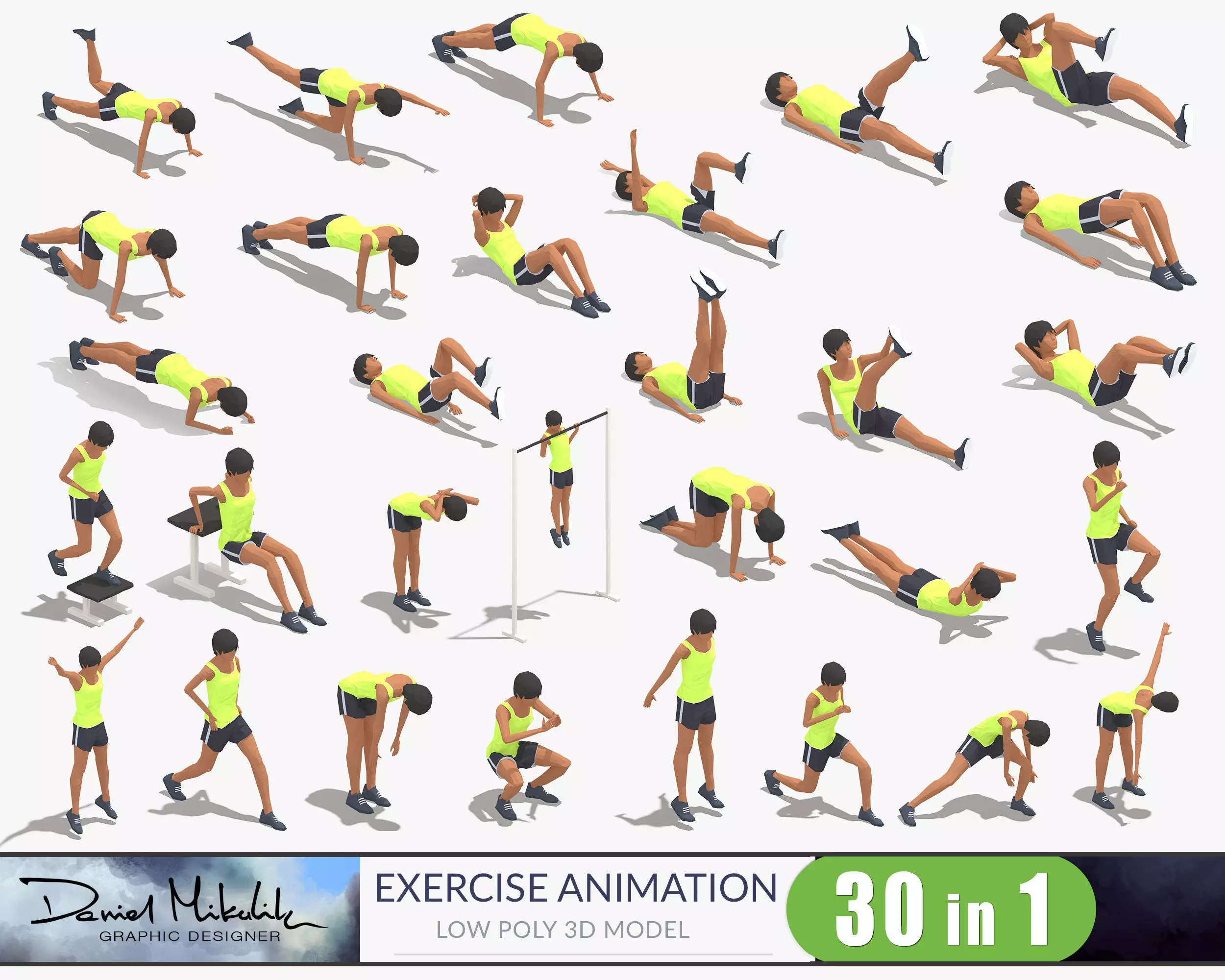 30 Woman Exercise Pack Low-poly 3D model