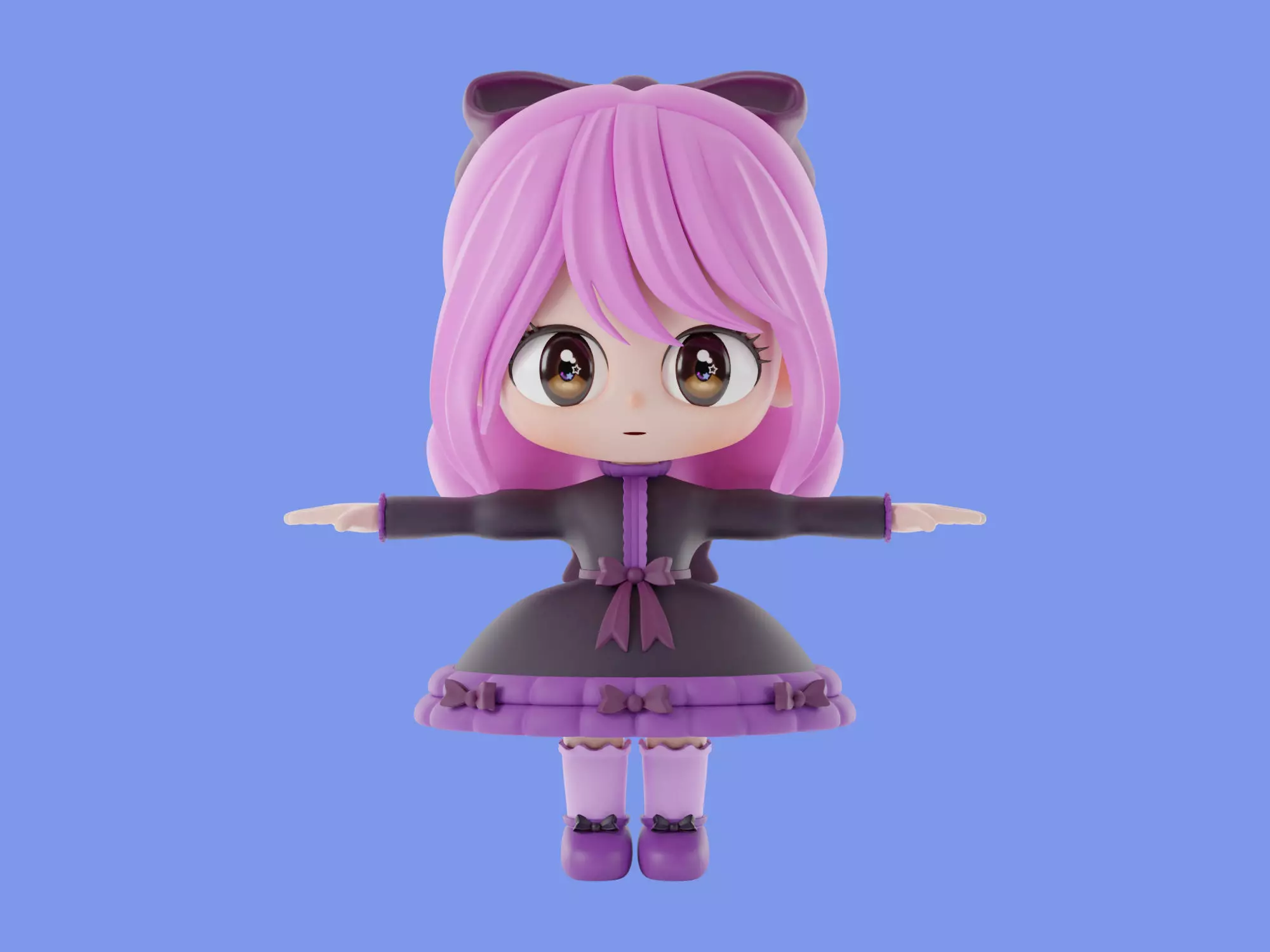 3d cartoon character Girl SD Cartoon Clean topology based on quads.