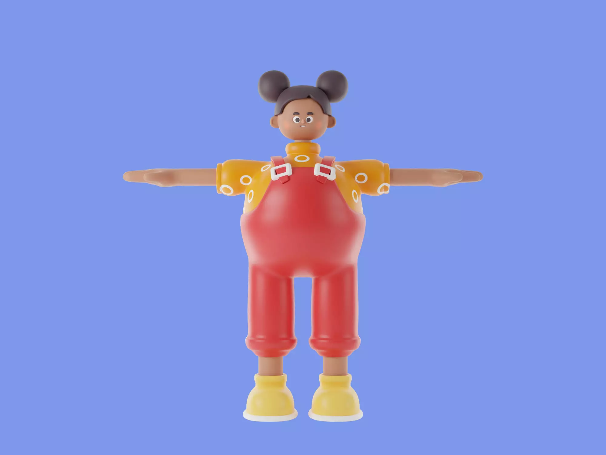 The fat woman's character ties her hair on two sides. She's dressed in a cute colorful