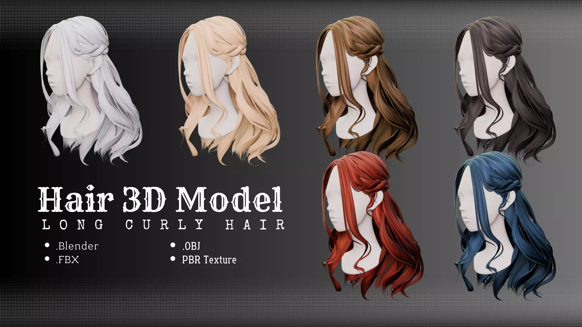This is a high-quality stylized 3D hair model featuring a long, curly hairstyle with a braided section on the side. Designed with clean topology and optimized for both realistic and stylized characters, this asset is ideal for use in games, animations, character design, or high-end renders.
