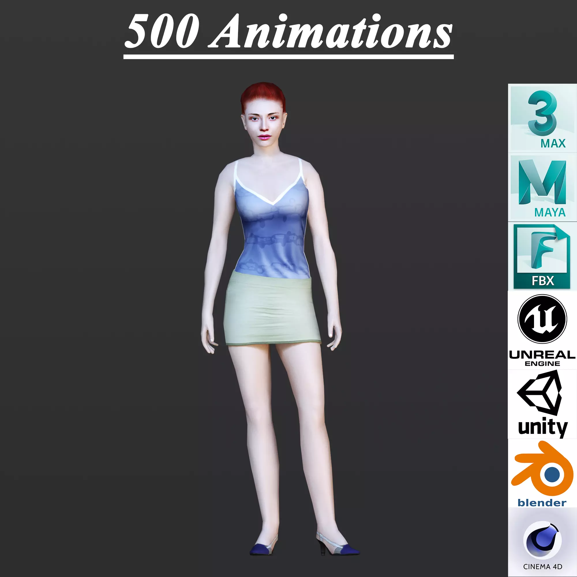 The model includes animations (movement or actions) that can be played in supported software or engines.