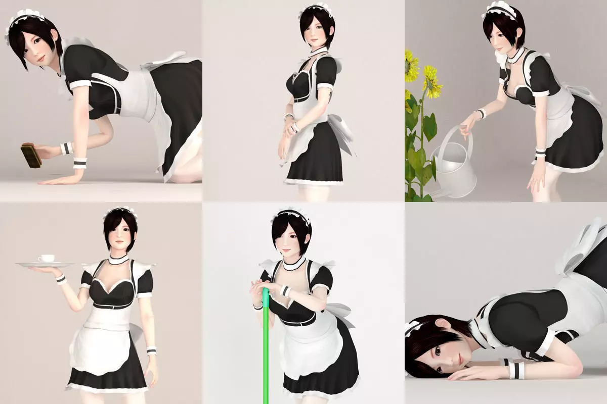 6 poses of Rina in maid outfit 3D model