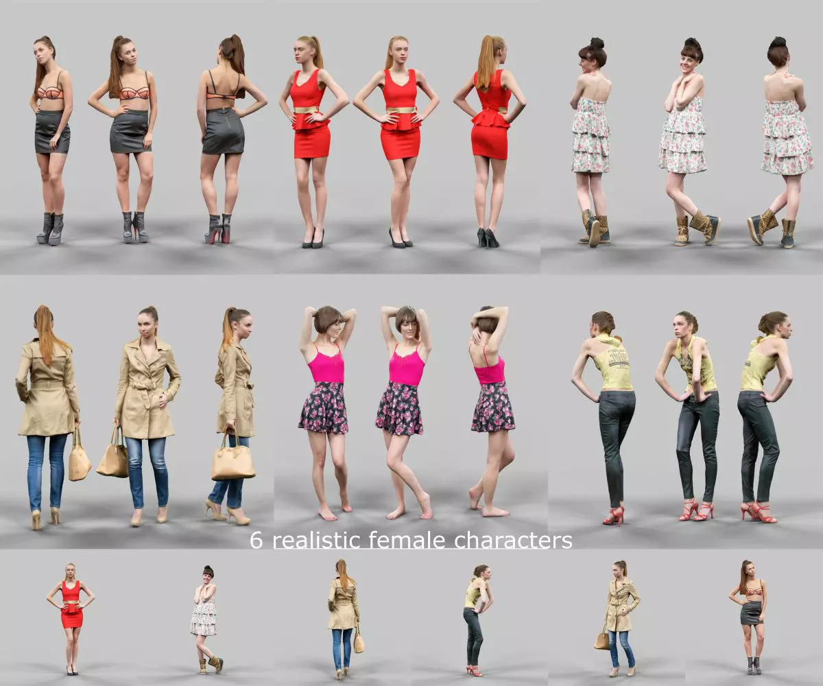 6 Realistic Female Characters Vol 2 Low-poly 3D model
