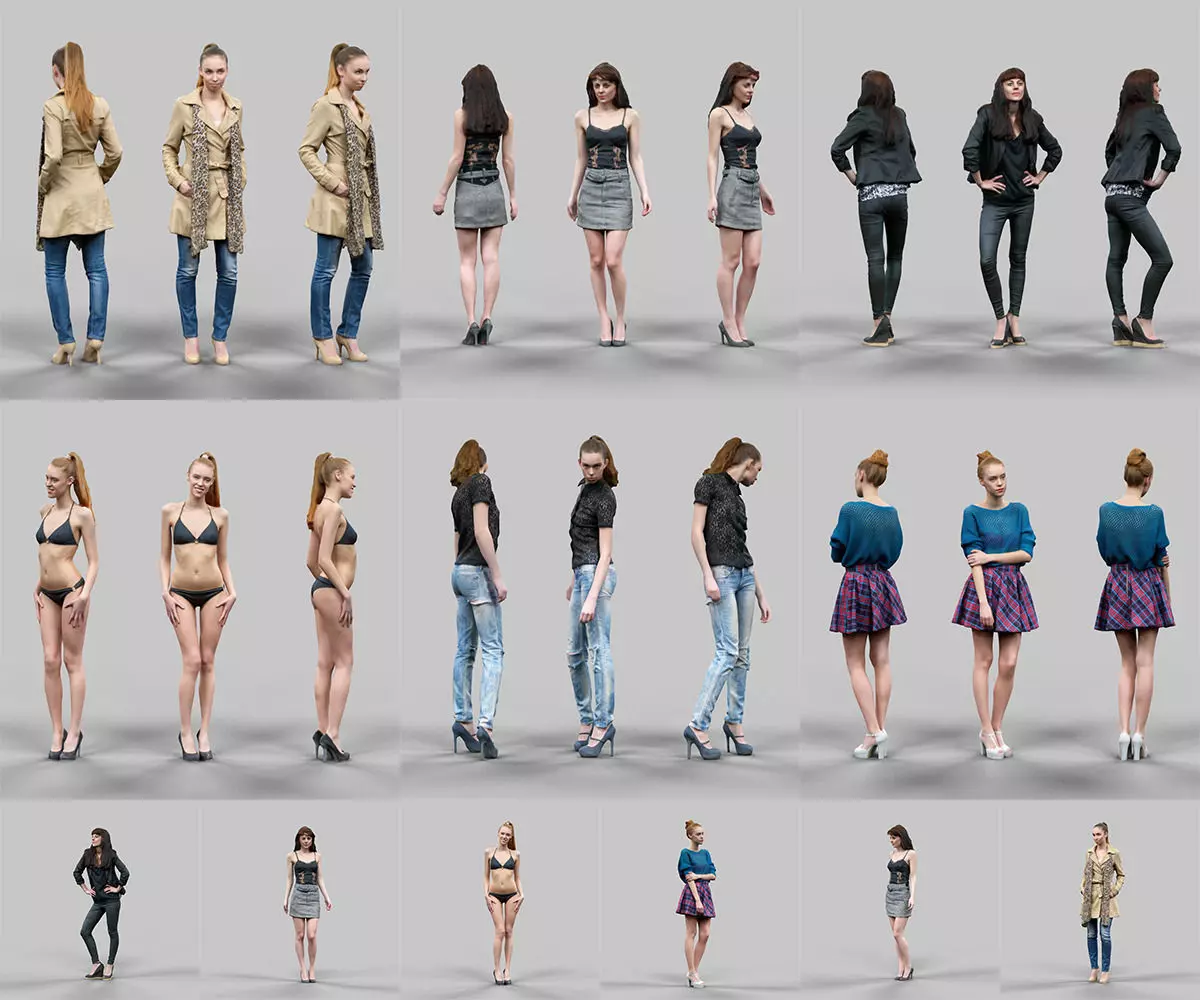 High quality, 3D scanned Female character collection. Scanned using photogrammetry for accurate and detailed representation of fabric and skin.
