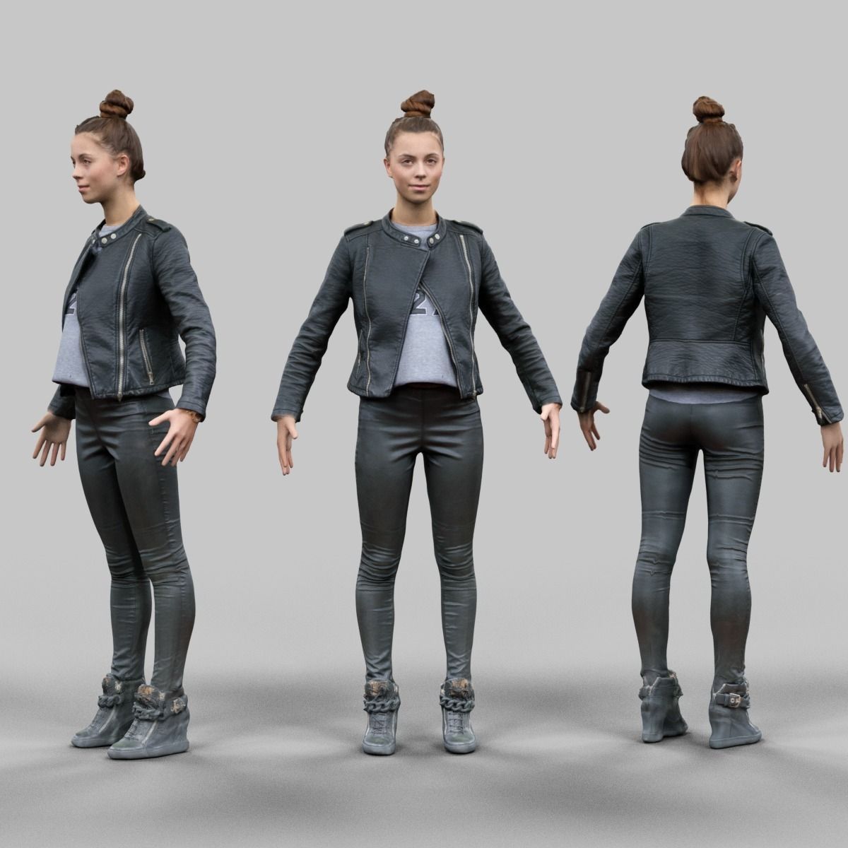 A-Pose girl in leather Low-poly 3D model