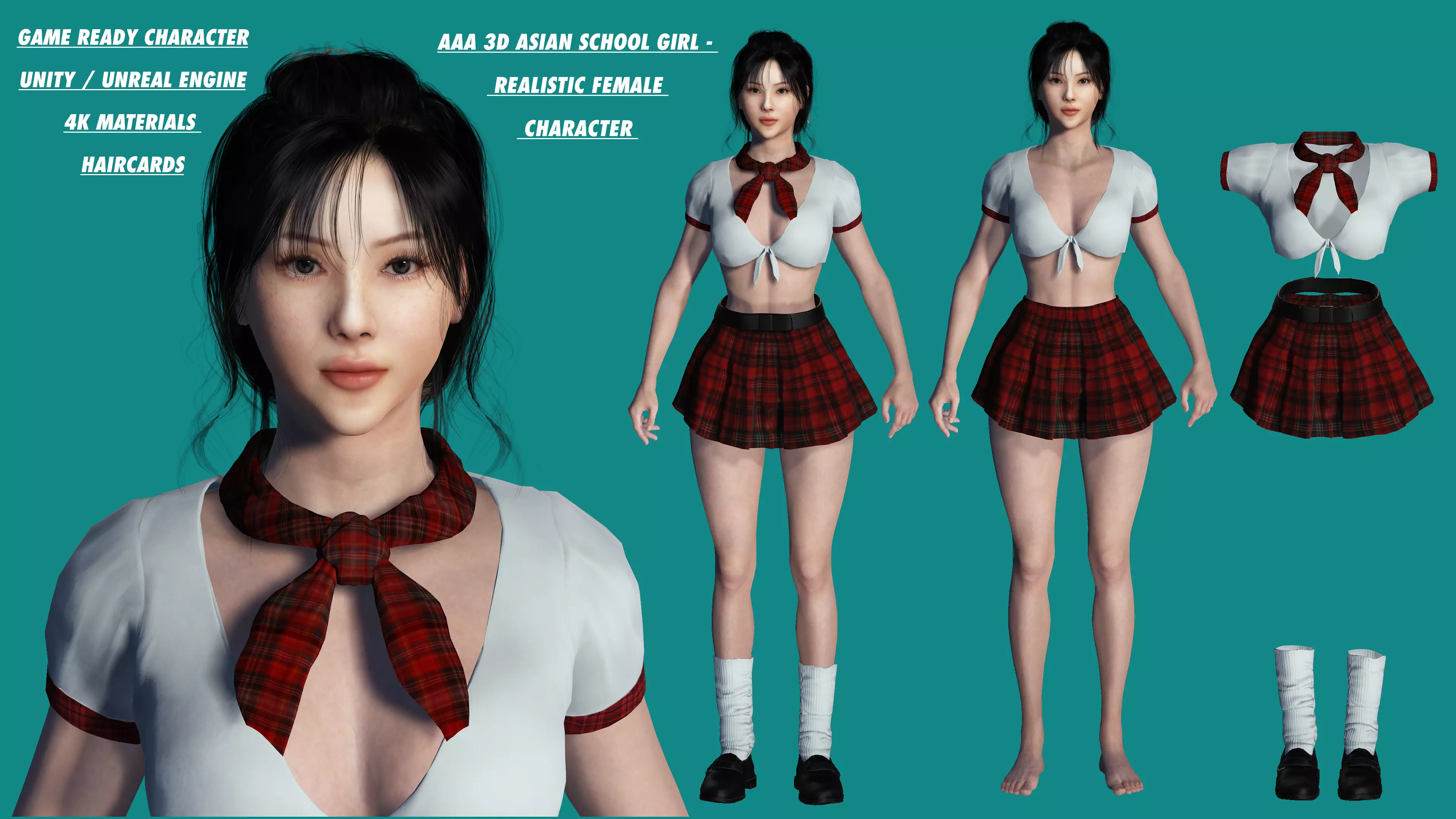 AAA 3D ASIAN-KOREAN SCHOOL GIRL - REALISTIC GAME READY CHARACTER Low-poly 3D model